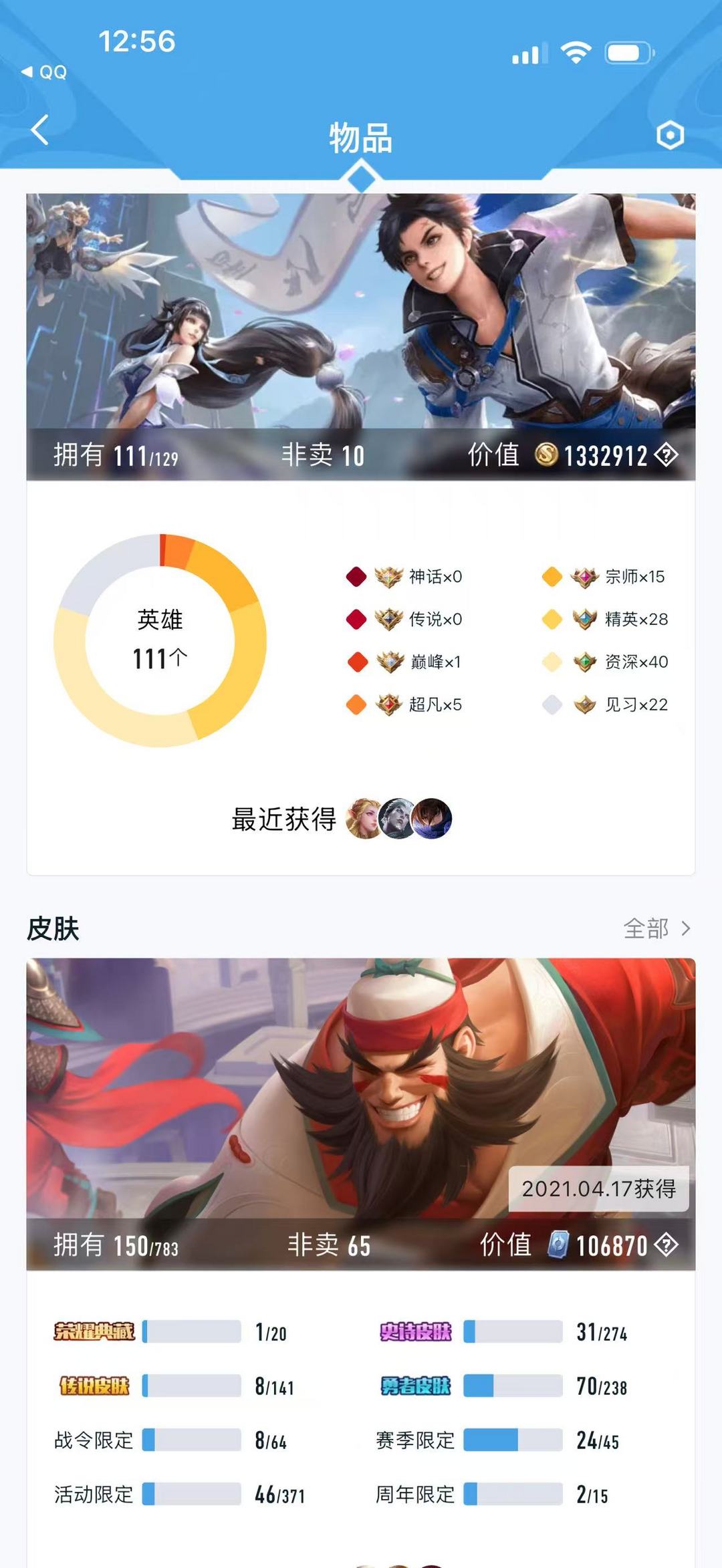 【V8 151皮】爽玩便宜号,皮肤应有尽有,150皮肤