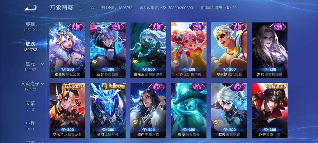装备描述:三典藏,全息+星域+银白`孙行者`齐天大圣,125个英雄,148款皮肤!多款传说皮肤!禁止挂机!开挂!