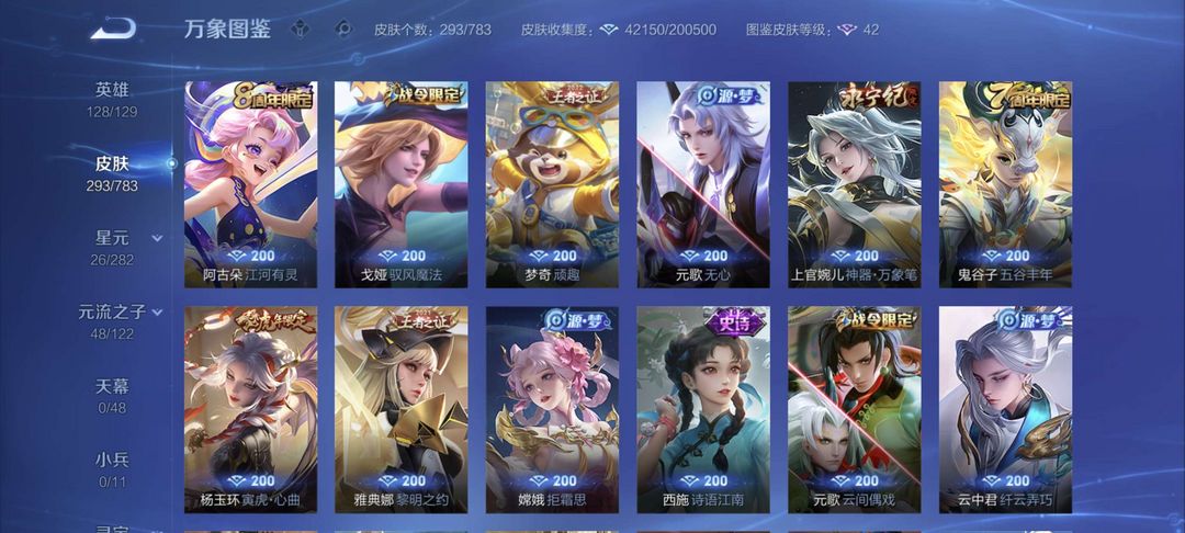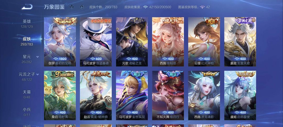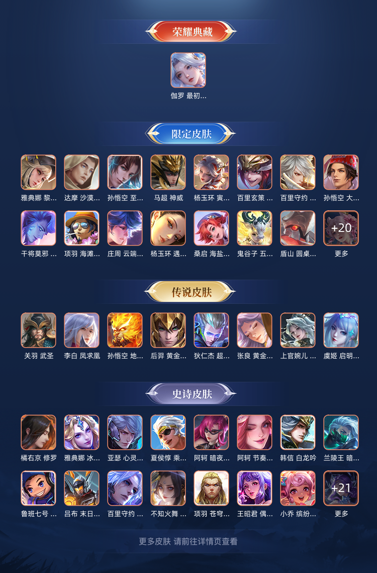 伽罗荣耀典藏,白虎志,朱雀志,元哥诡秘之主等多款限定皮肤,价格实惠