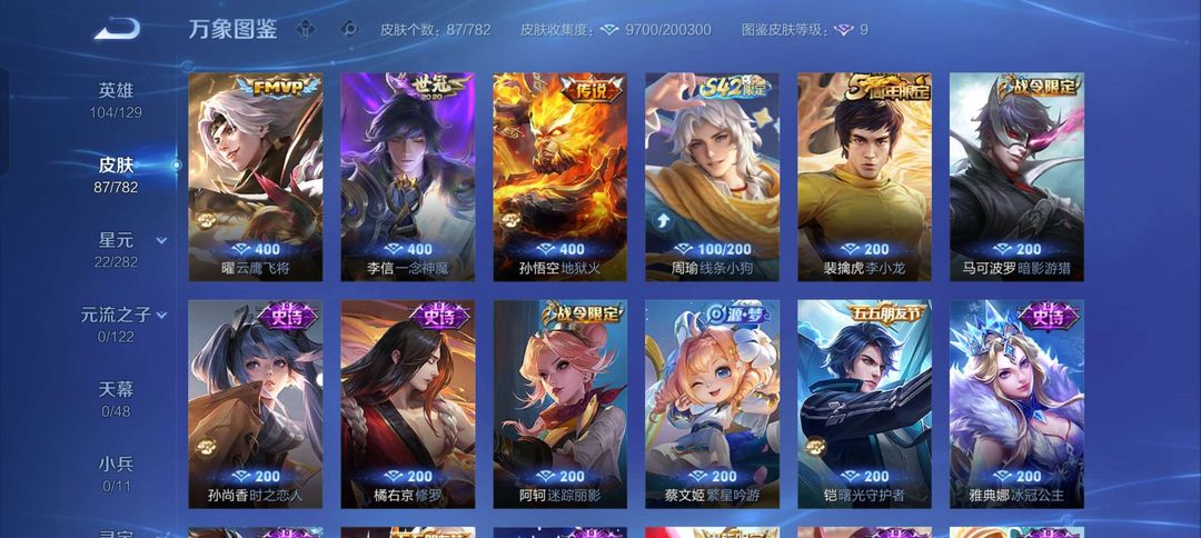 V6有皮肤,应有尽有。嗯,想租留意。80个英雄,100~101个皮肤。