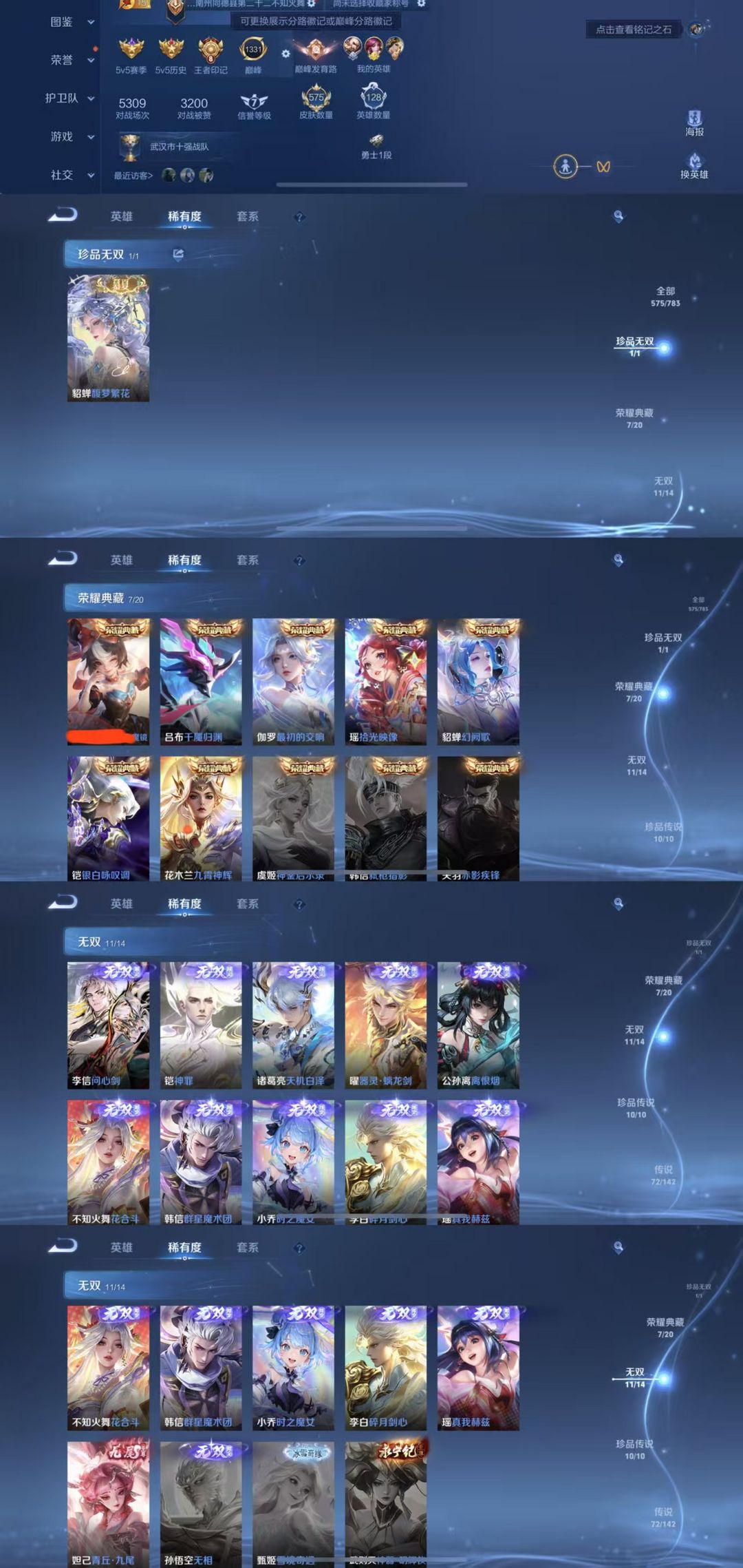 限制: 租号2次及以上 | 撤单率<49%才可租用此帐号装备描述:该号英雄128个皮肤575个,典藏7个,无双11个,珍品传说10个,星传说5个,传说72个,史诗190个,祝您游戏愉快~