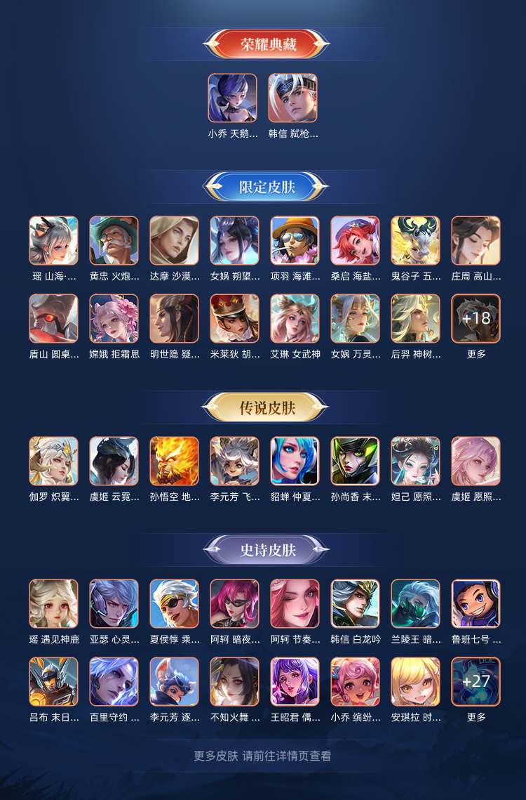 王者段位电玩鲁班小乔荣耀典藏虞姬蛇年限定,妲己蛇年限定韩信荣耀典藏孙悟空地狱之火朵莉亚限定