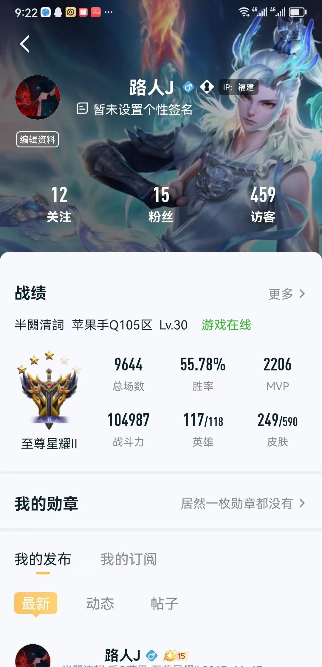 游戏区服:王者荣耀-QQ苹果-QQ账号