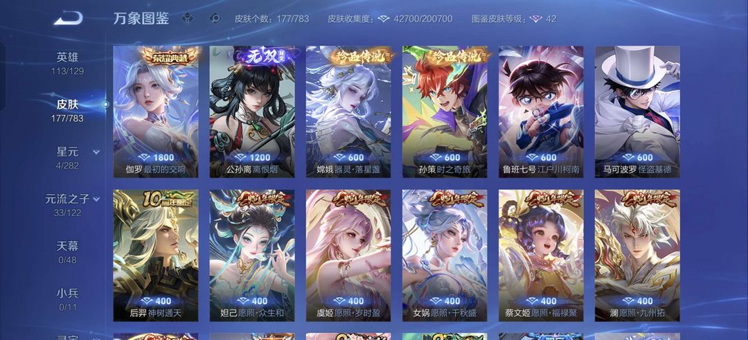 伽罗典藏,公孙离无双,两套完整年限,马克,柯南联动,共56个传说