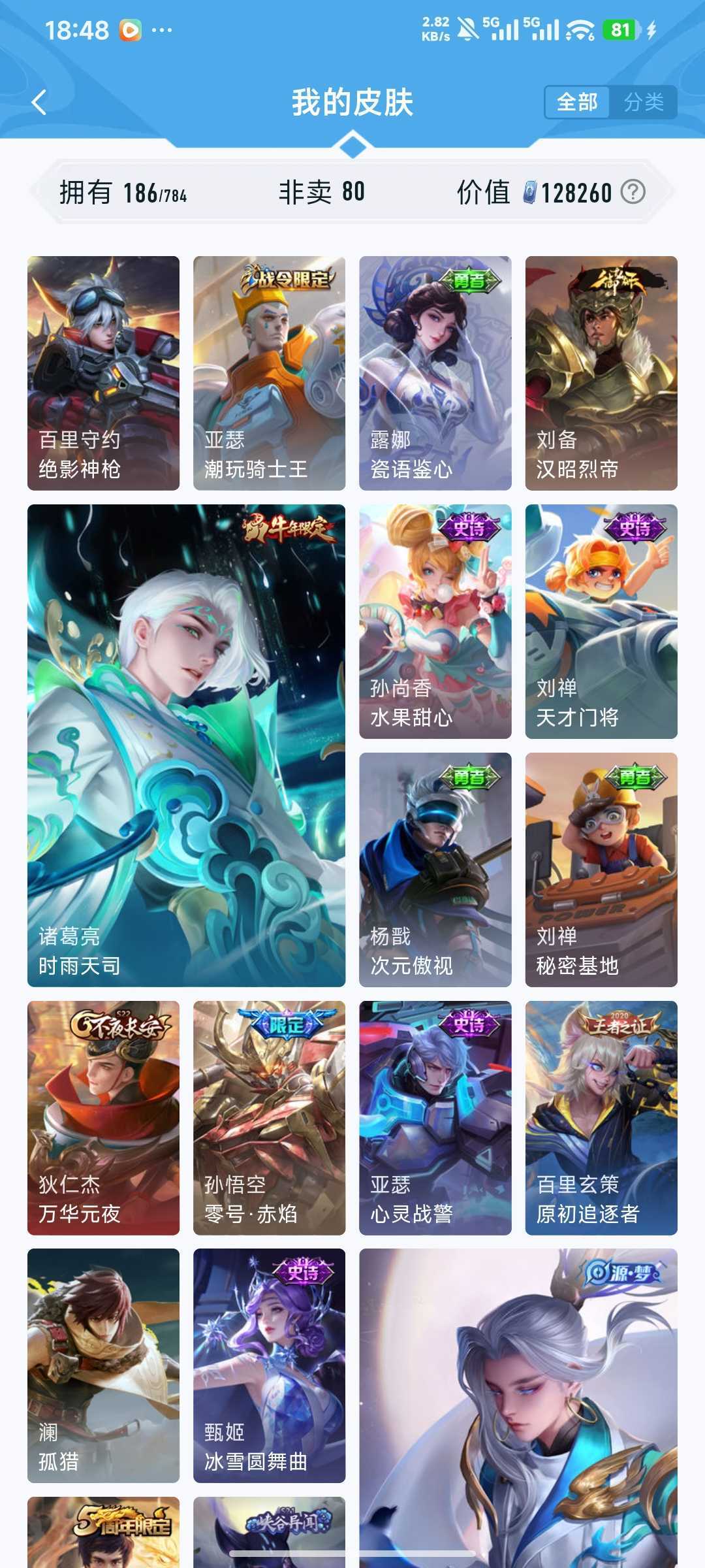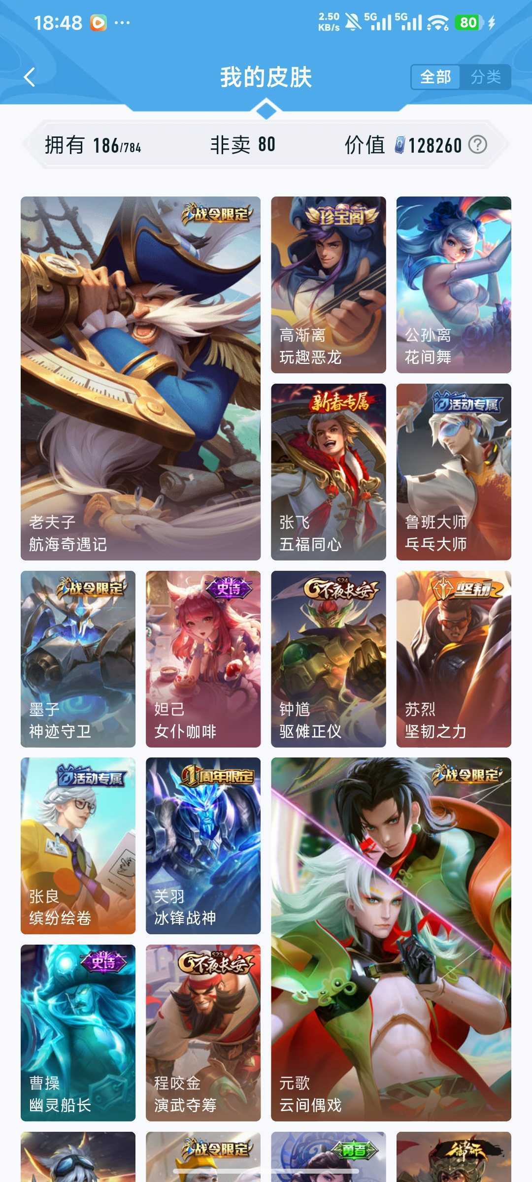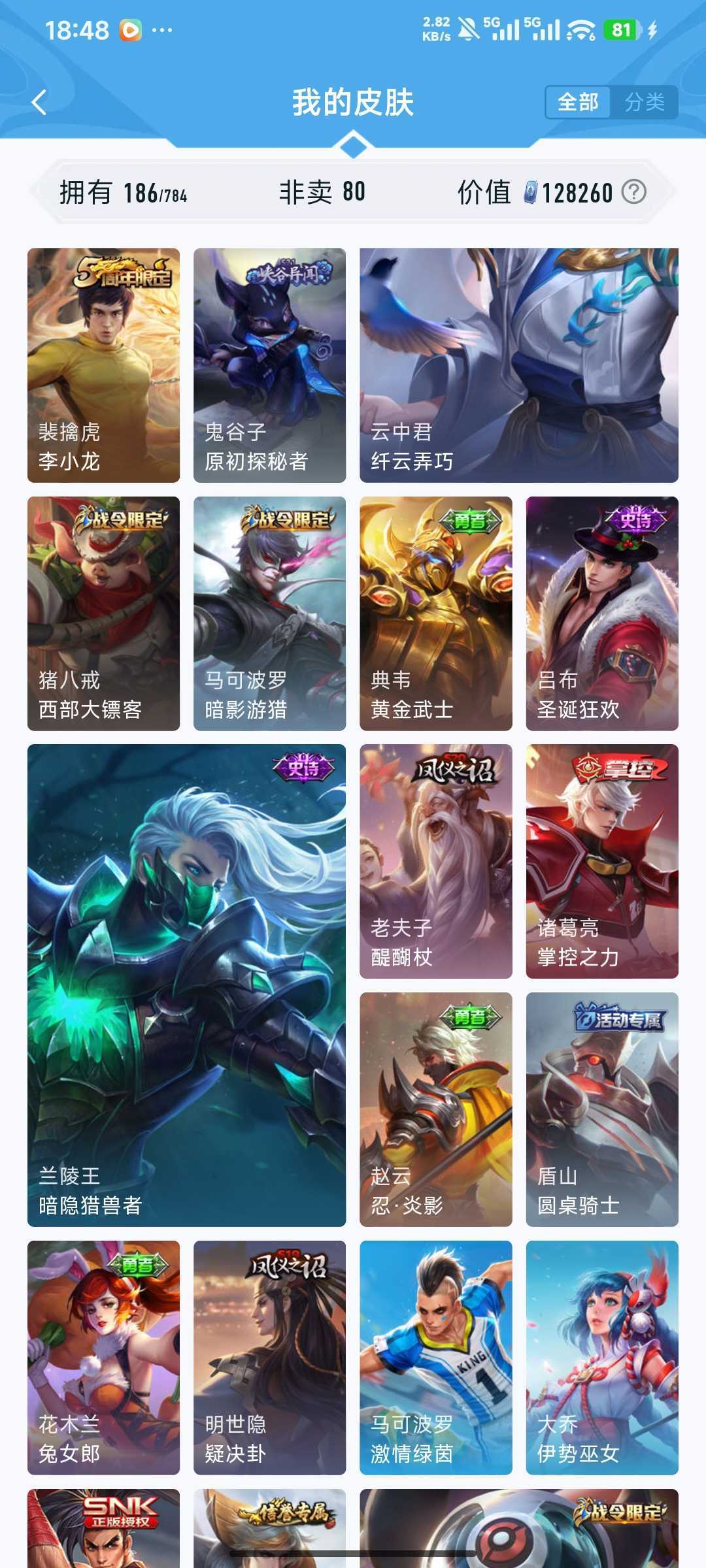 装备描述:v7 185皮 吕布典藏千魇归渊!!! 猴子星传说零号赤焰!!! 时雨天司 冰封战神 猫影幻舞 天狼狩猎者 浮梦炉