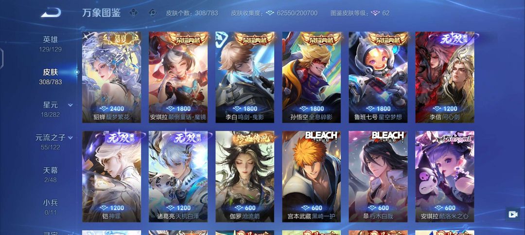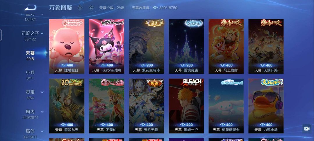 1珍品无双,4荣耀典藏,3无双,5珍品传说,2天幕