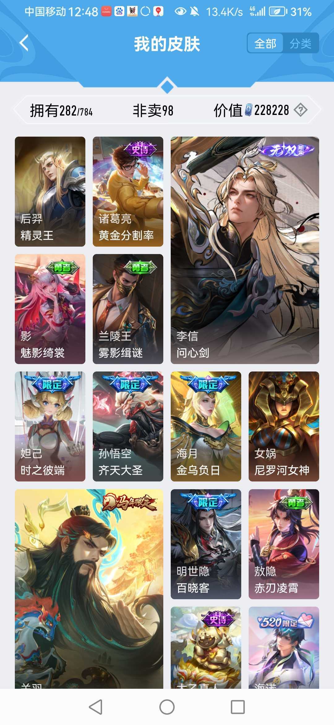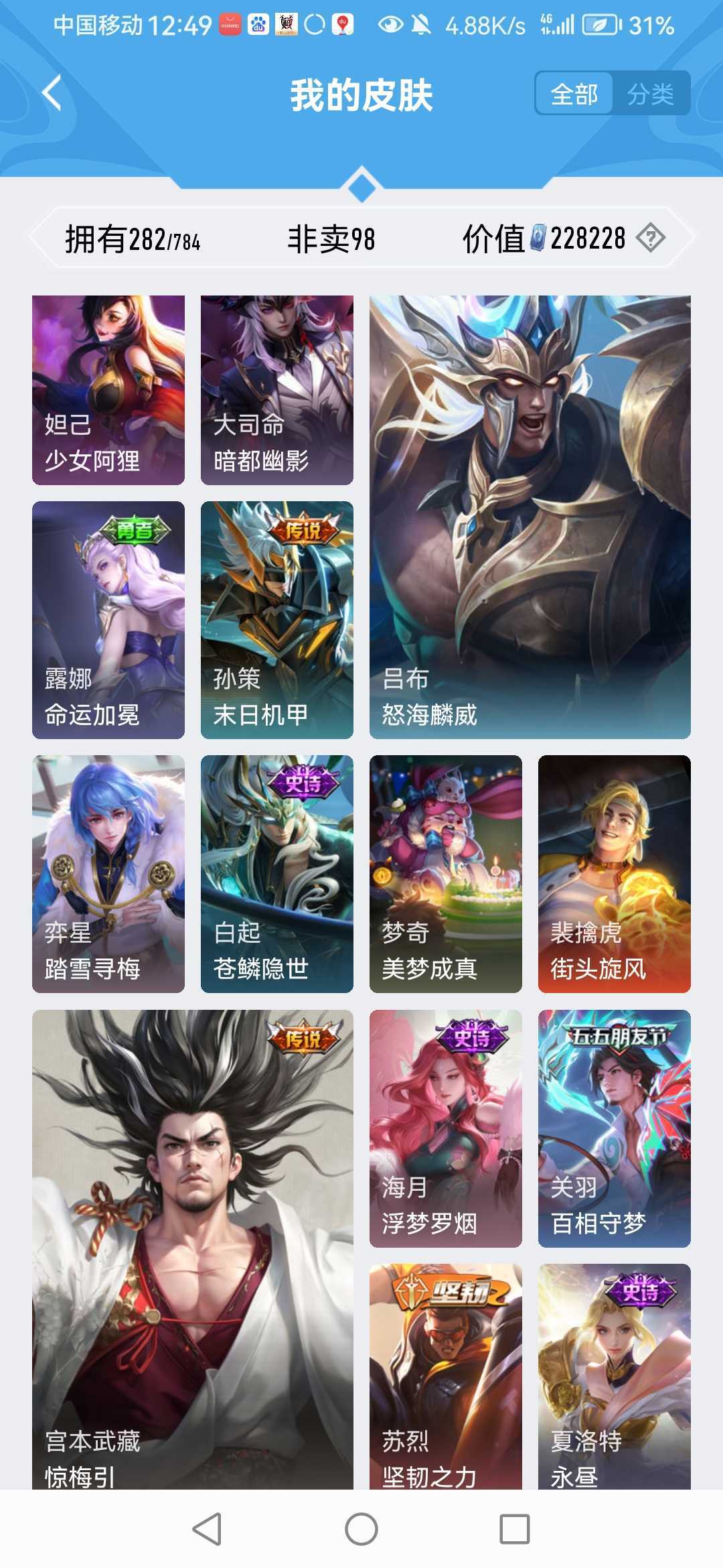 李信无双♥关羽马年♥云诺千山♥山河定♥落雪白狼♥无双飞将♥战舞者♥炽霜斩♥诗剑行九州拓