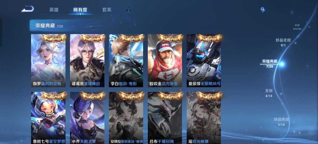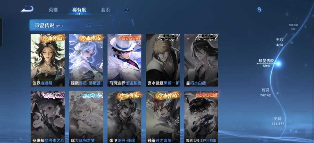493皮⚡7典藏3珍品4无双⚡伽罗珍品李信无双无相猴子马年全套木兰情人节踏浪归螭龙剑怪盗基德最初交响