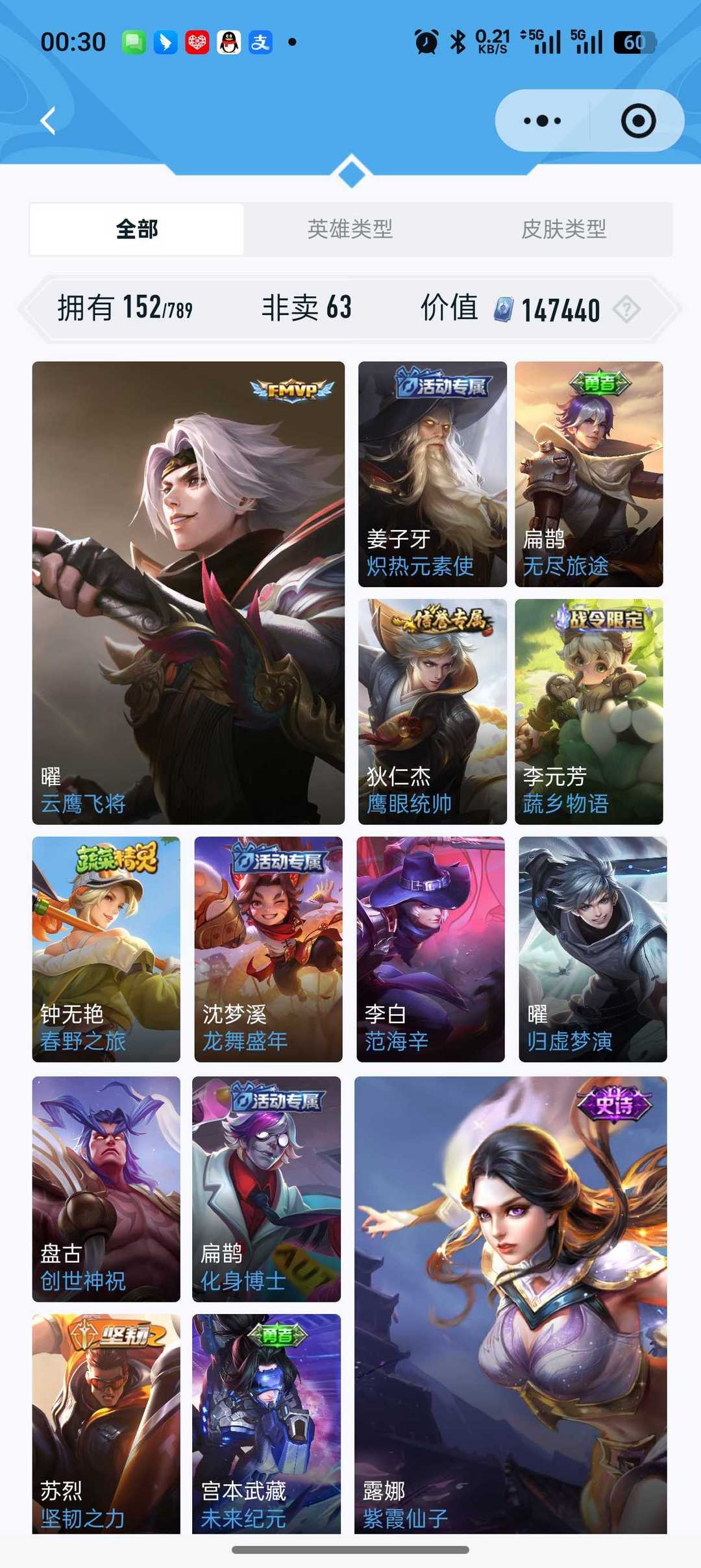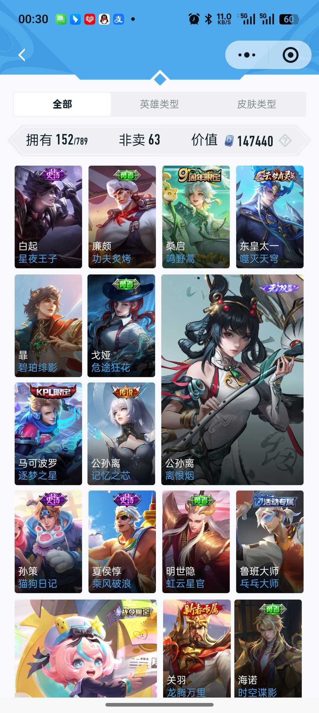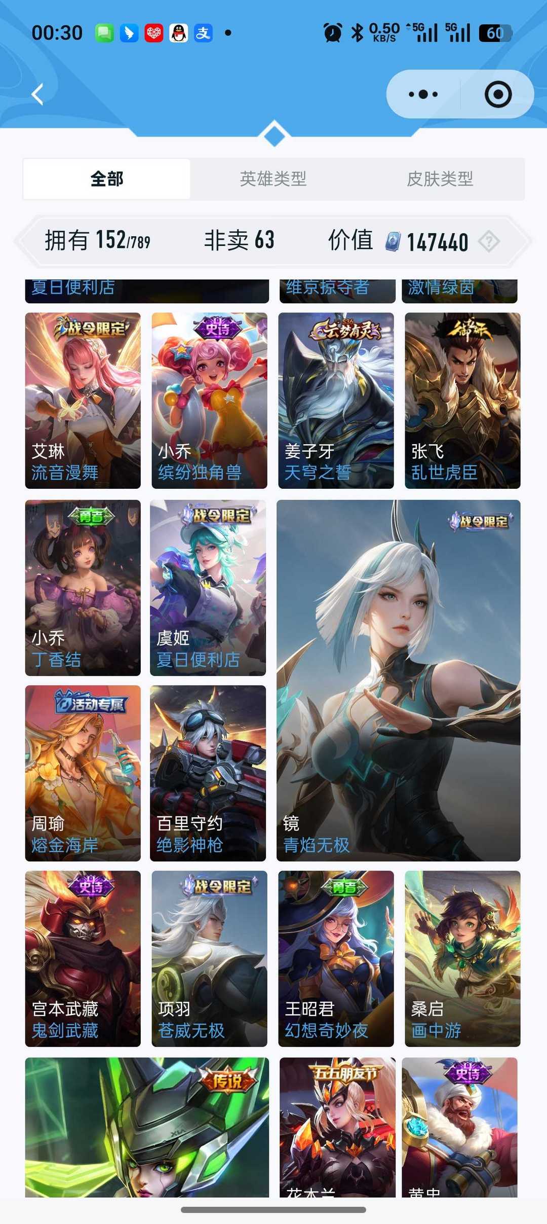 吕布荣耀典藏 虞姬荣耀典藏 10+传说皮肤