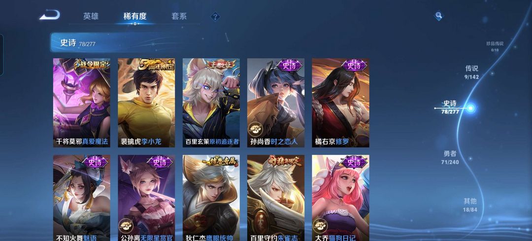 荣耀典藏李白鸣剑曳影,多款限定史诗,多款传说皮肤