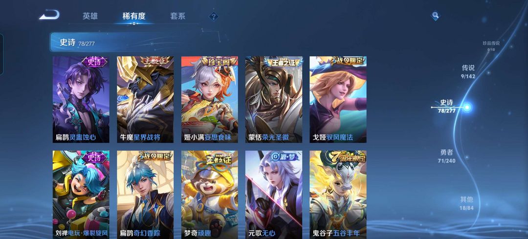 装备描述:荣耀典藏李白鸣剑曳影,多款限定史诗,多款传说皮肤