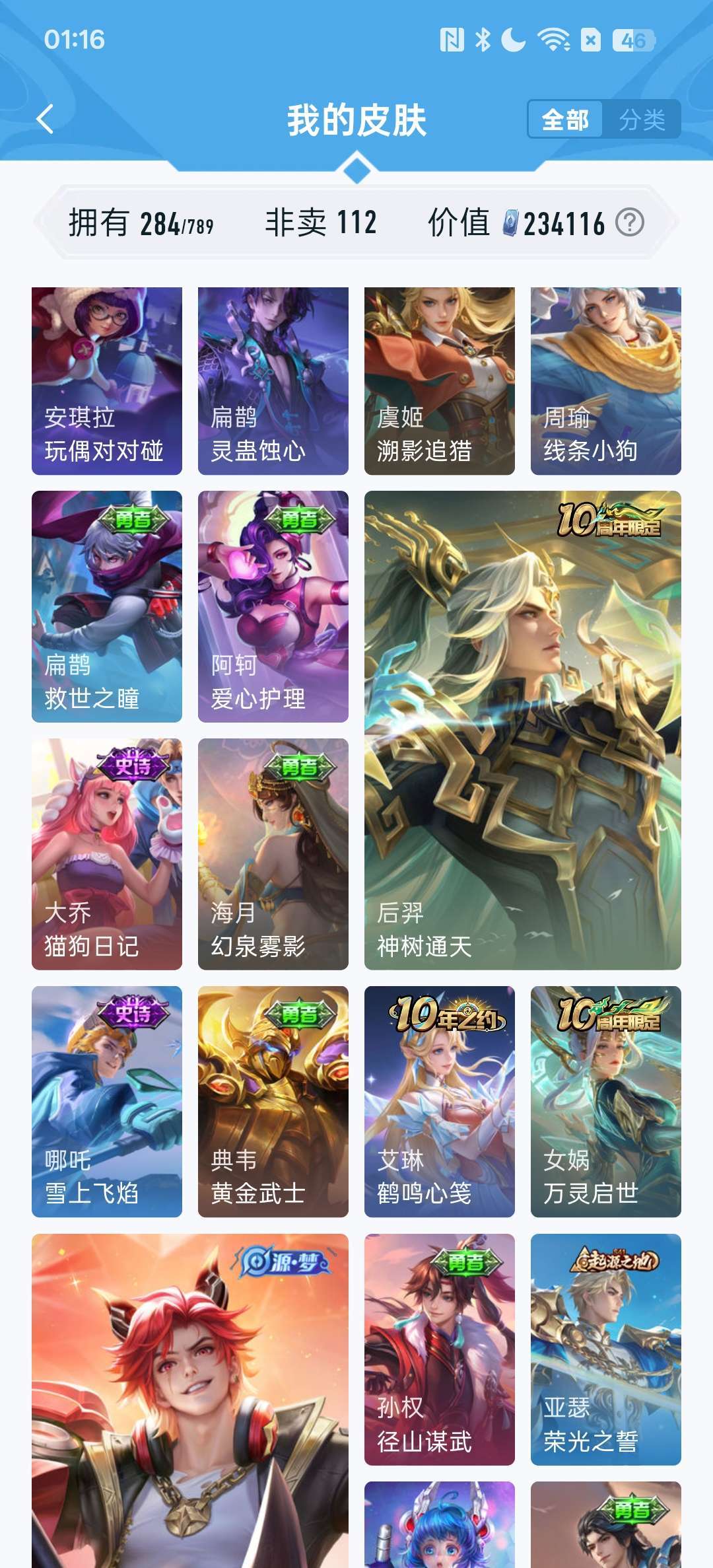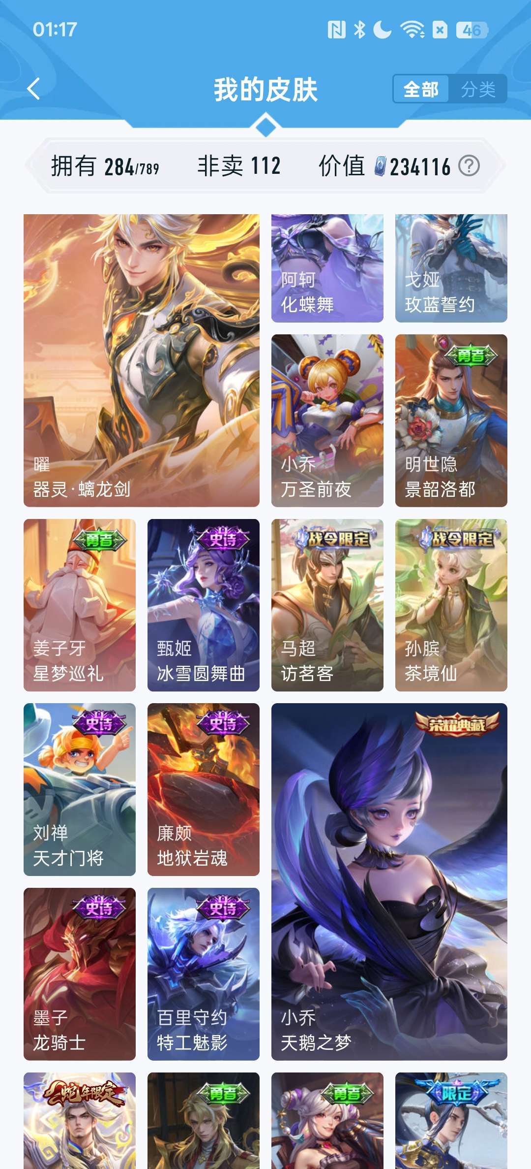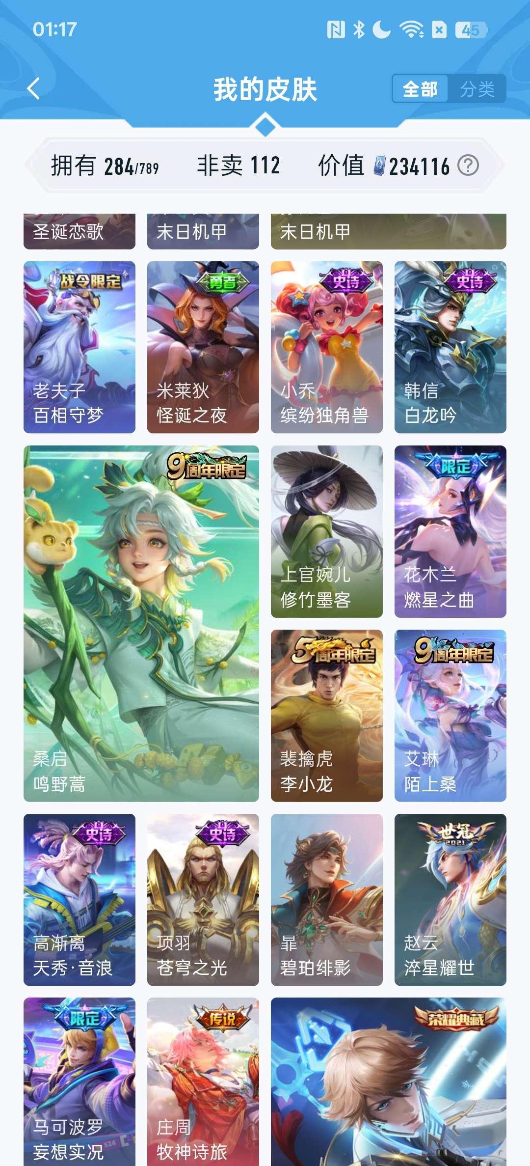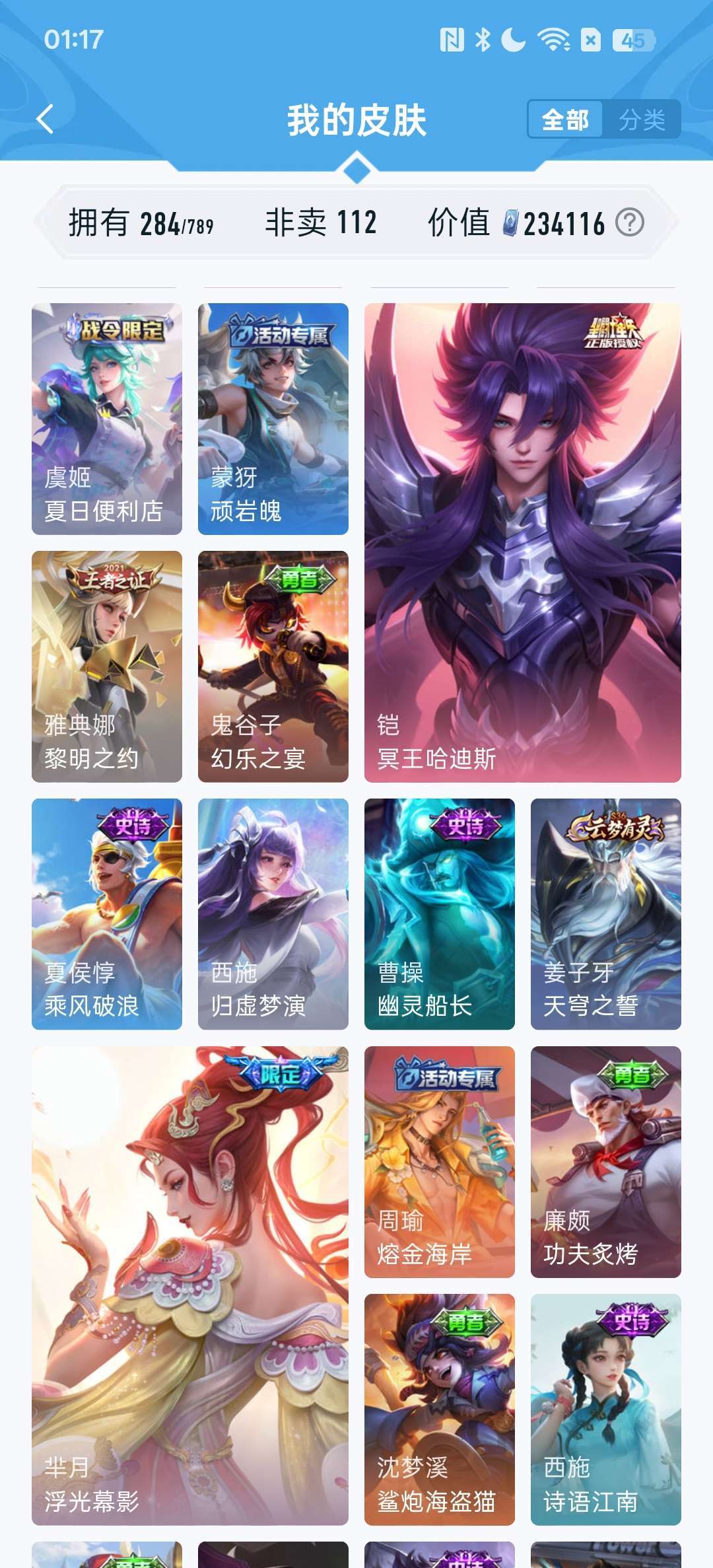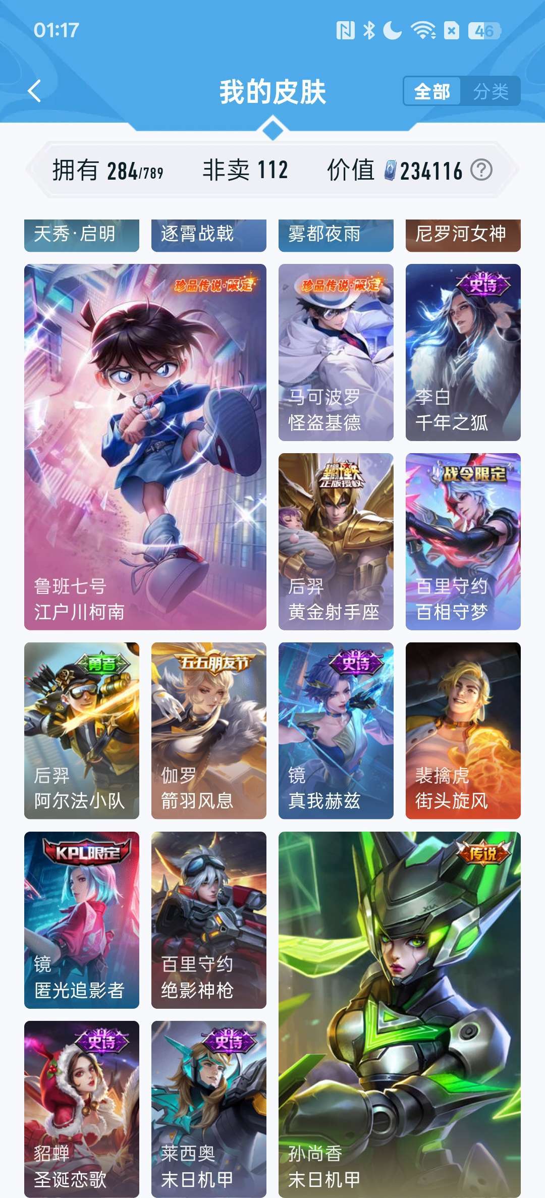 怪盗基德,柯南,冥王哈迪斯,李白荣耀典藏,耀无双皮,金标九千分高渐离,还有各种限定皮