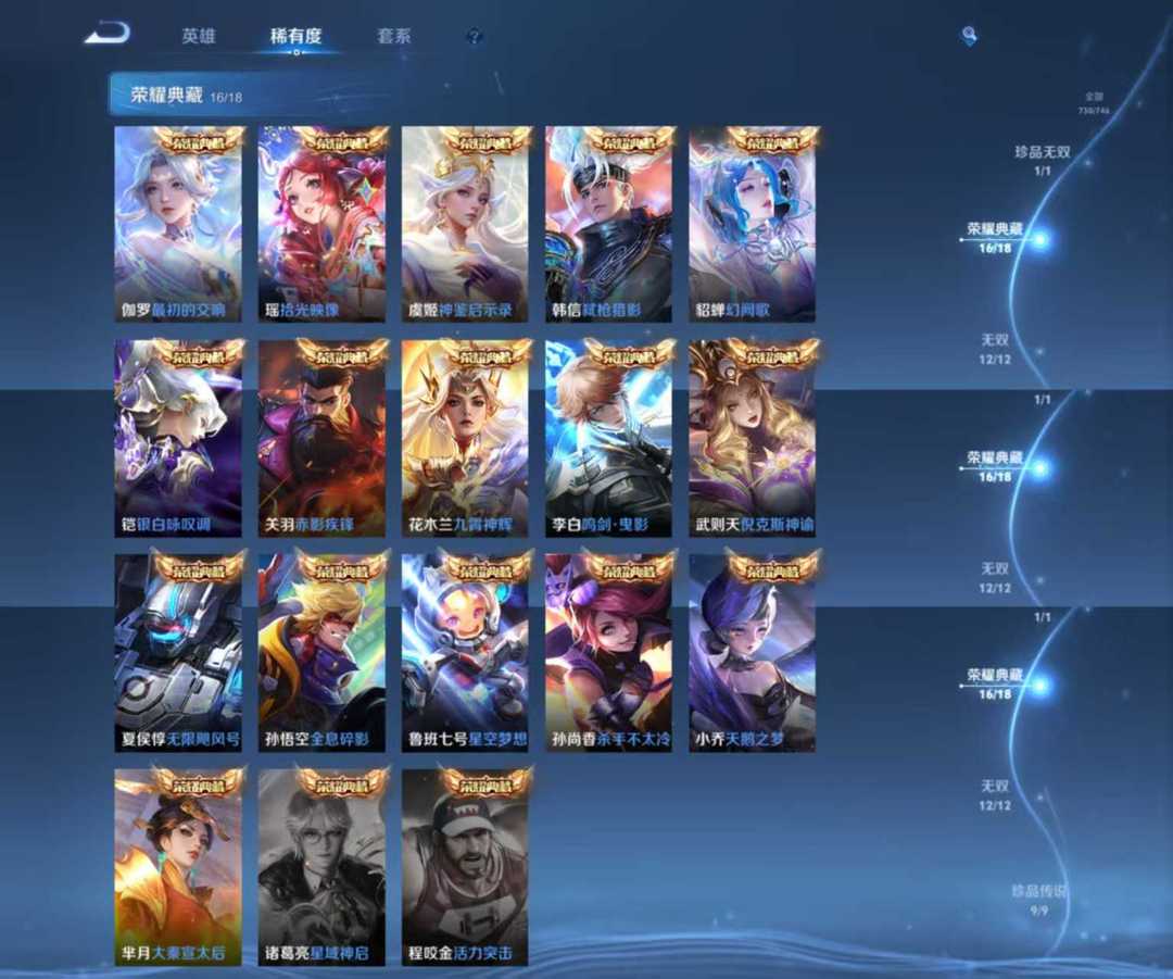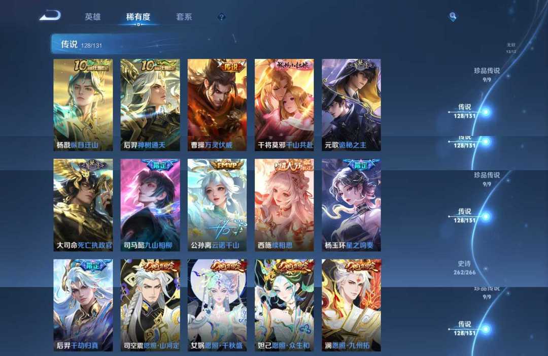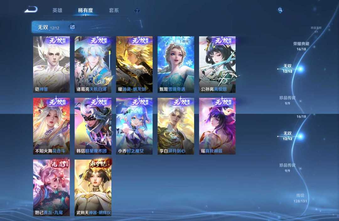 满皮肤号 十周年皮肤全入神罪貂蝉慕夏✨全部传说十六款典藏满无双满珍品十五星传说