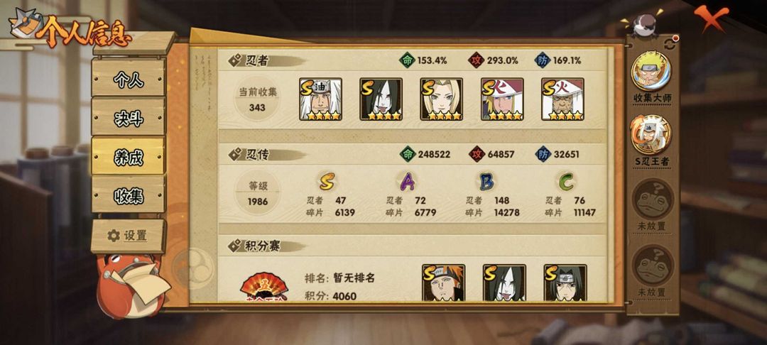 【至尊】47S⭐72A⭐343忍 两千二百万➕战力 黑绝