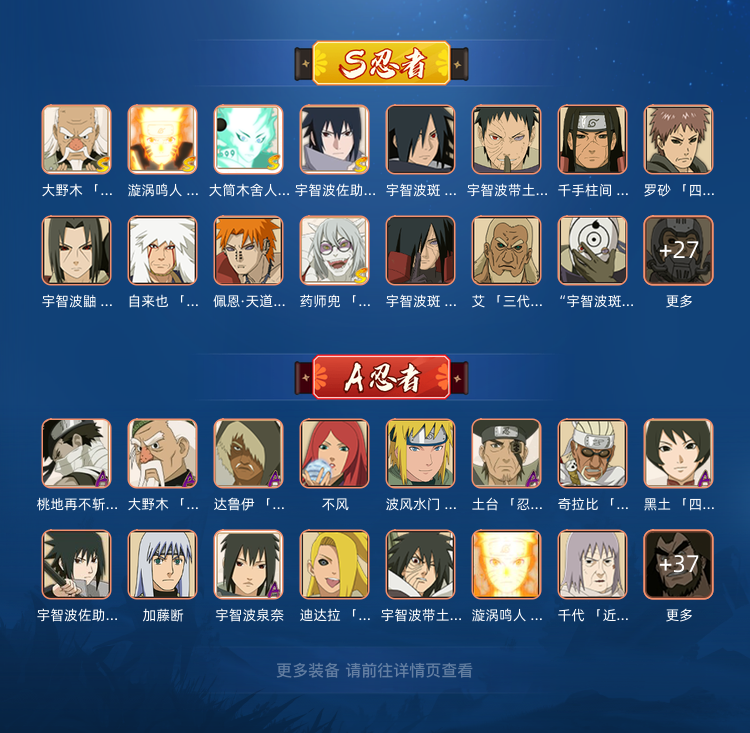 装备描述:42s52a,忍战雷忍战李黄猿紫狗青年艾死门凯破面带土青水