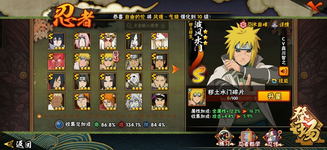 装备描述:20个S忍29A忍者✨天道超✨白面具✨死三代✨死四代✨死初代✨百豪纲手✨死门凯✨仙人兜✨漂泊佩恩✨漂泊扉间速玩