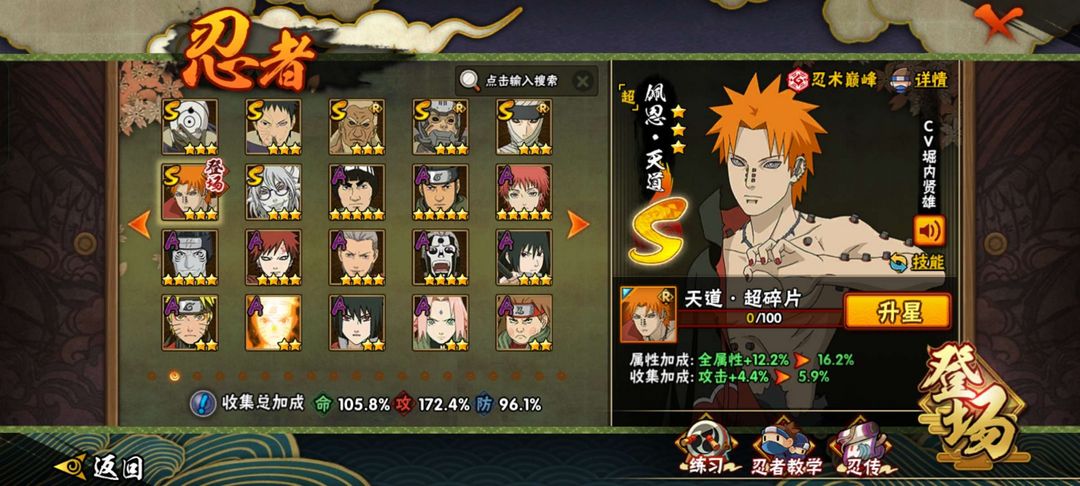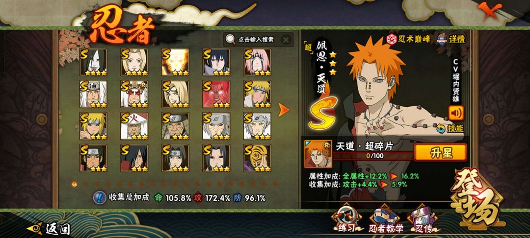 2000万战力 27S✨39A✨天道超✨秽土水门✨忍战带土✨可以带团本✨可以带秘境✨2000万✨