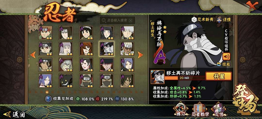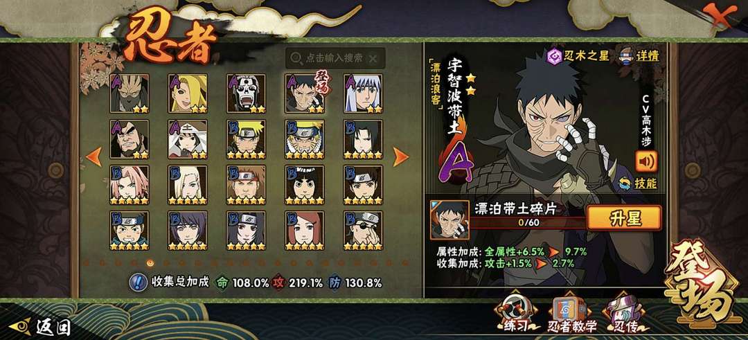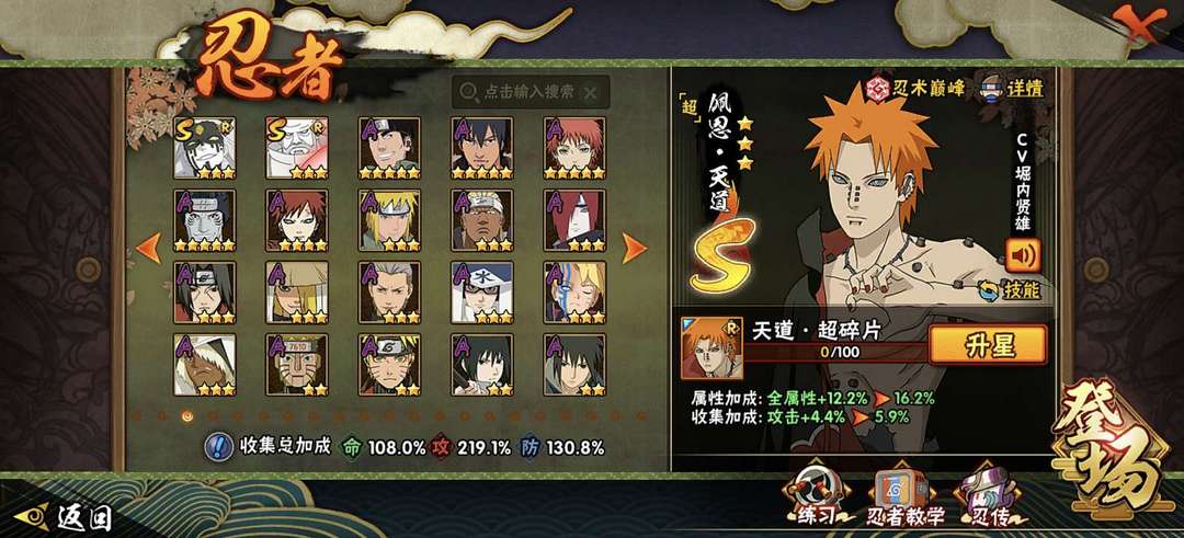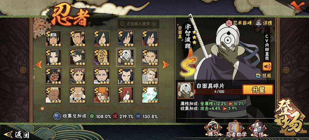 装备描述:V15✨54S✨暴怒九尾✨传说自来也✨漂泊带土✨忍战带土✨天道超✨白面具✨解斑✨秽土水门✨永恒佐助✨