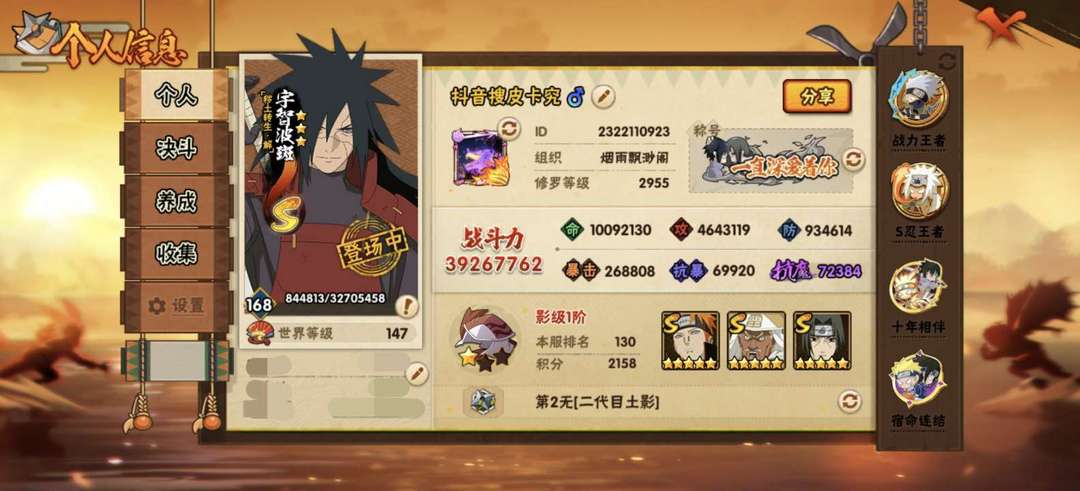 ✨3926W战✨55S✨78A✨破面带土✨天道超✨解斑✨白面具✨九喇嘛水门✨须佐卡卡西✨死门凯✨忍战