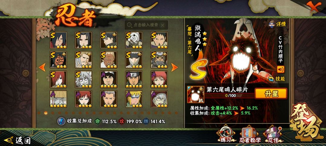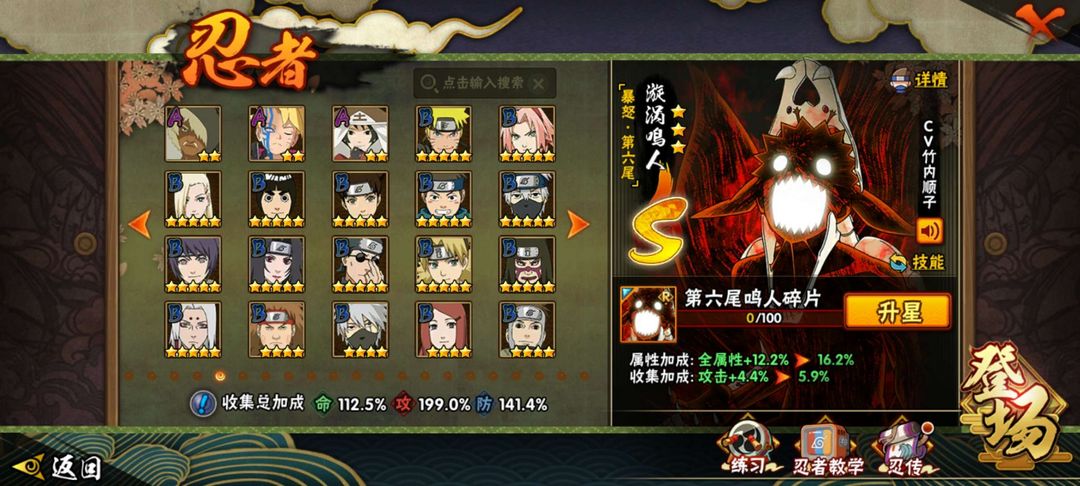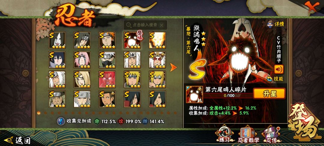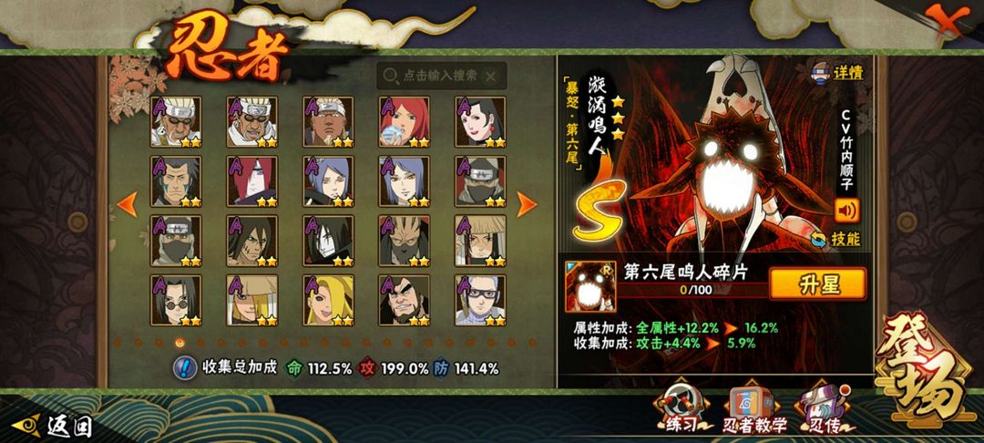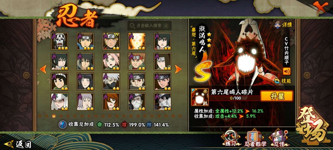 34S~51A~1100万战力~六尾鸣人,创立柱间,须佐止水等多个忍法帖忍者。欢迎各位来玩。