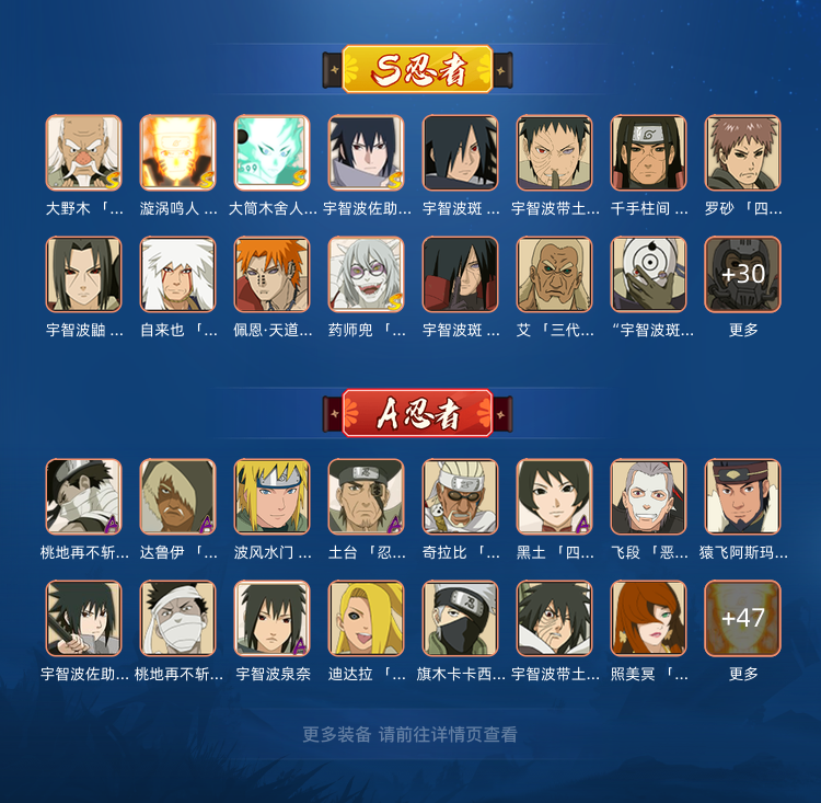 装备描述:仙人自来也六尾鸣人罗沙金氏九喇嘛鸣人烈斗等