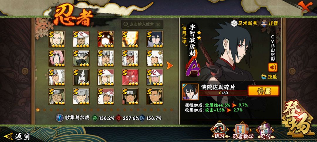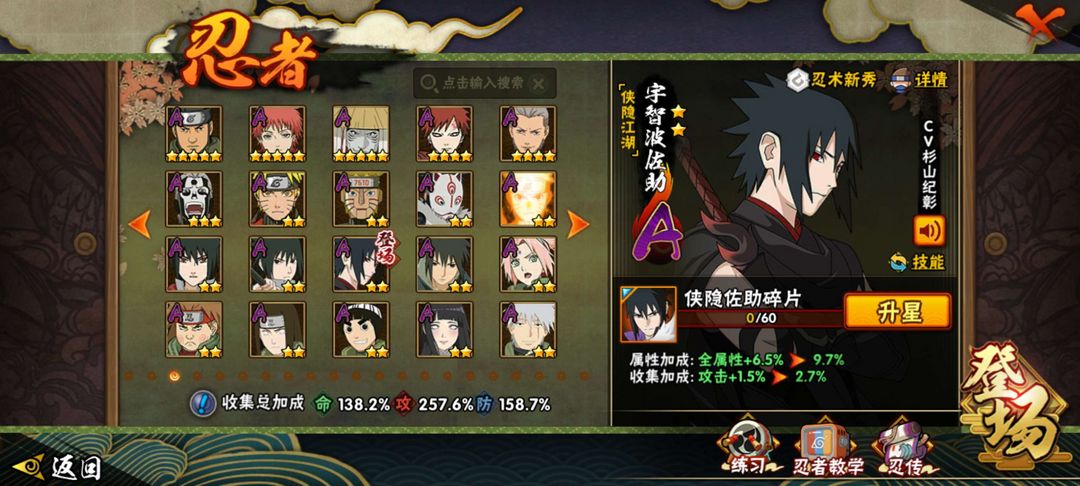 装备描述:39s81a1900w战力200w攻击可带尾兽可玩忍者