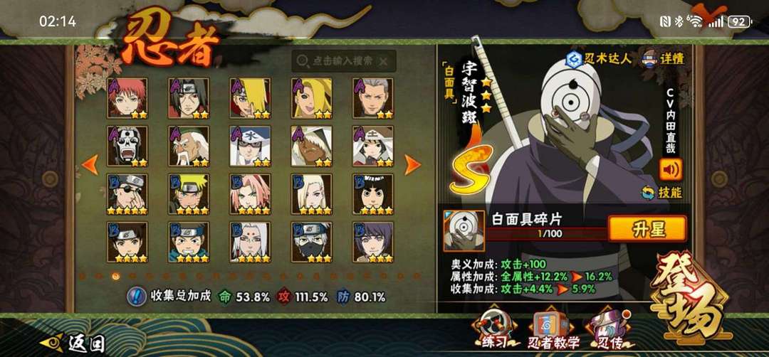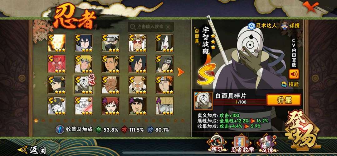 白面具,盾构,创立柱间,须佐止水,金式,桃式,须佐卡卡西,黄猿,永恒佐助,解斑,忍战艾,死门凯,熊猫