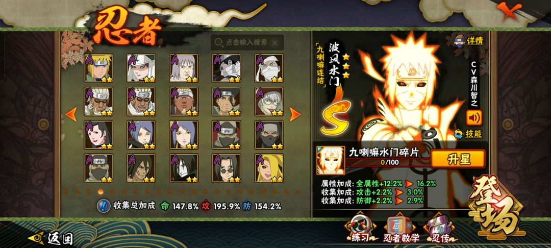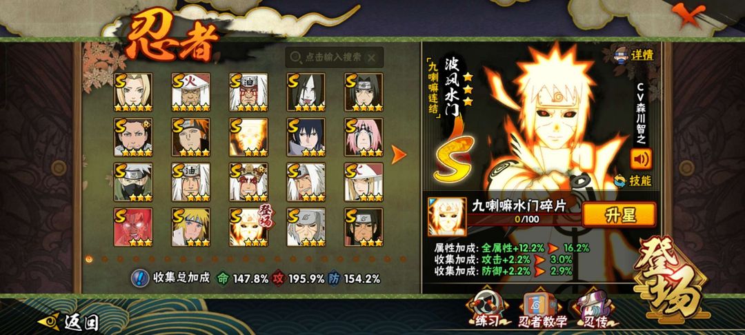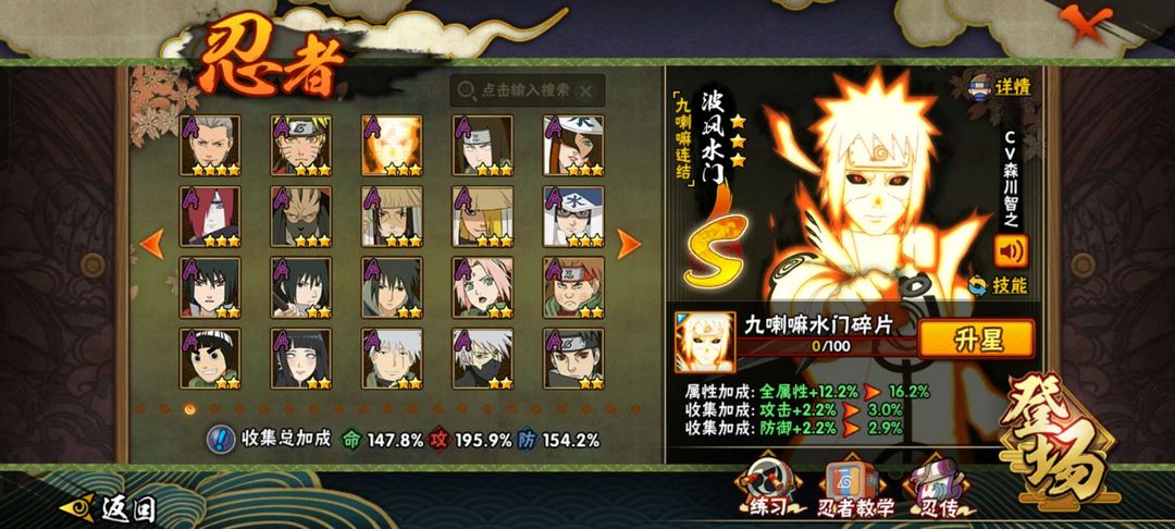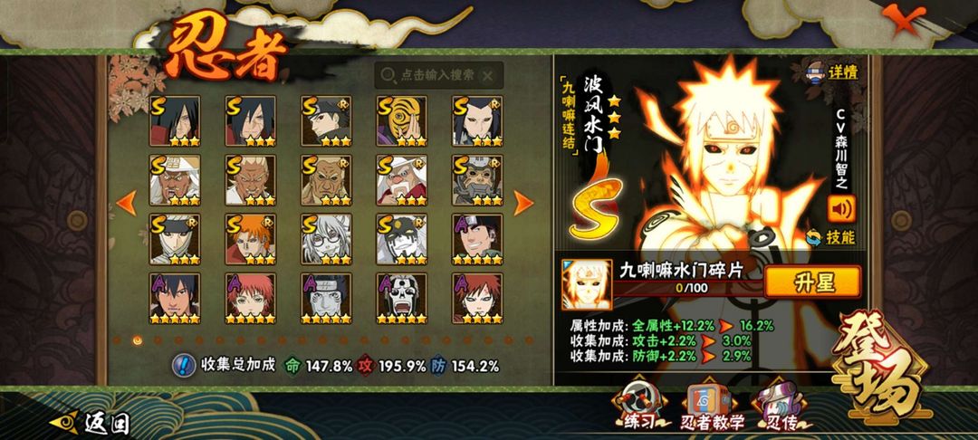 装备描述:34S 52A 282忍者,九尾水门已拿下,两千万战力可带团本