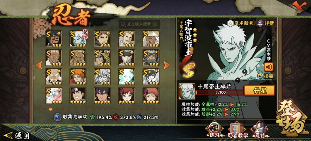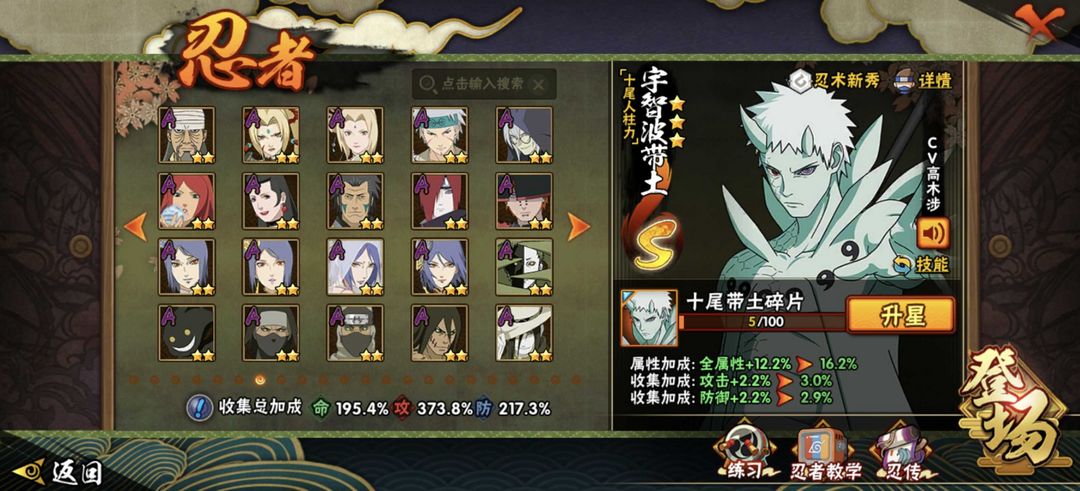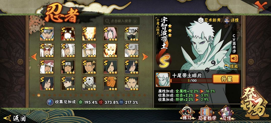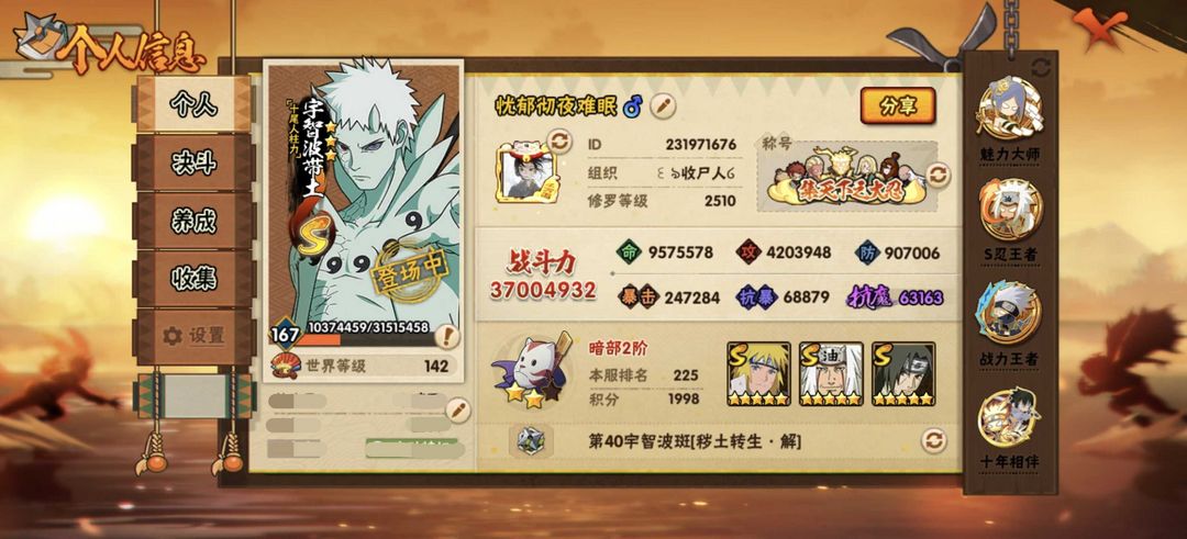 V15✨3700W战✨56S✨十尾带土✨神驹小南✨金身水门✨天道超✨暴怒九尾✨解斑✨忍战艾✨黑绝