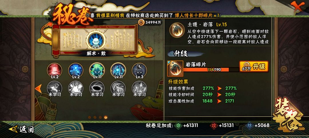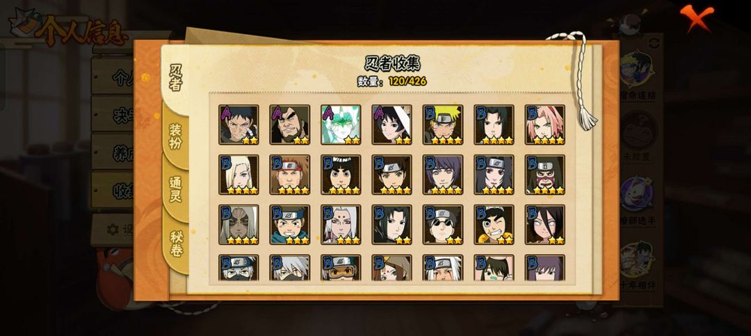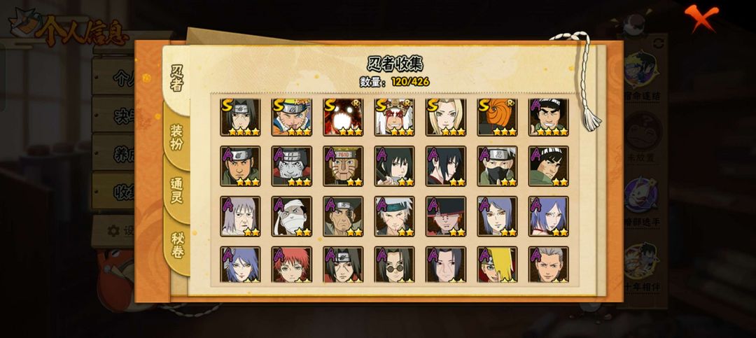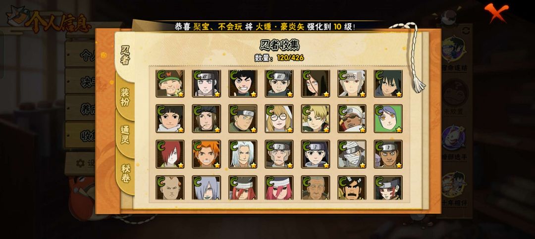 装备描述:具体图片都有,需要什么忍者可以看一下,大概有十个个金氪金忍者,有熊猫蛞蝓万蛇,螃蟹,变色龙,秘卷差几个没。