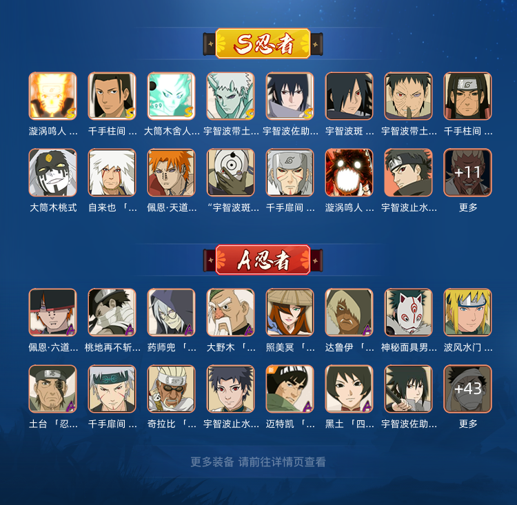 点卷忍者多,大多数都是热门的,漂泊和侠隐系列的忍者都有