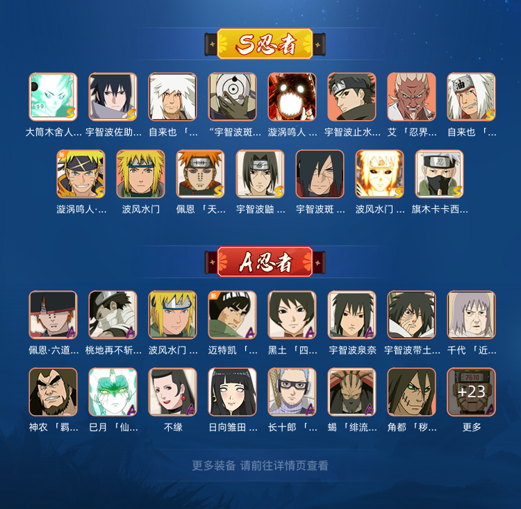 装备描述:15S⭐️40A ⭐️舍人⭐️白面⭐️须佐止水⭐️漂泊带土⭐️漂泊小南⭐️漂泊佩恩⭐️毁号行为涉及毁坏虚拟财产罪及计算机安全罪,请文明游戏素质游戏,让我们共建美好租号平台!
