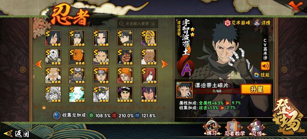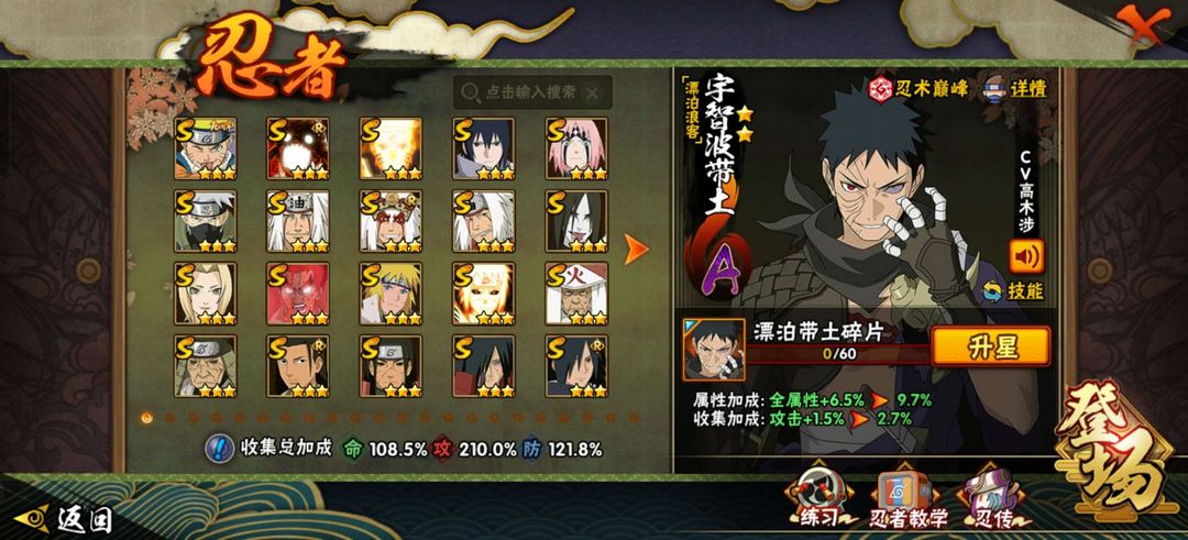 39S忍,48A忍,账号内有漂泊带土,天道超,十尾带土,五影会谈斑已经解锁,有喜欢可以直接租哦