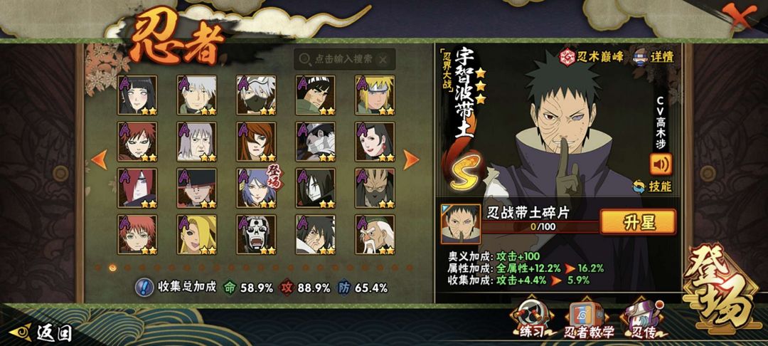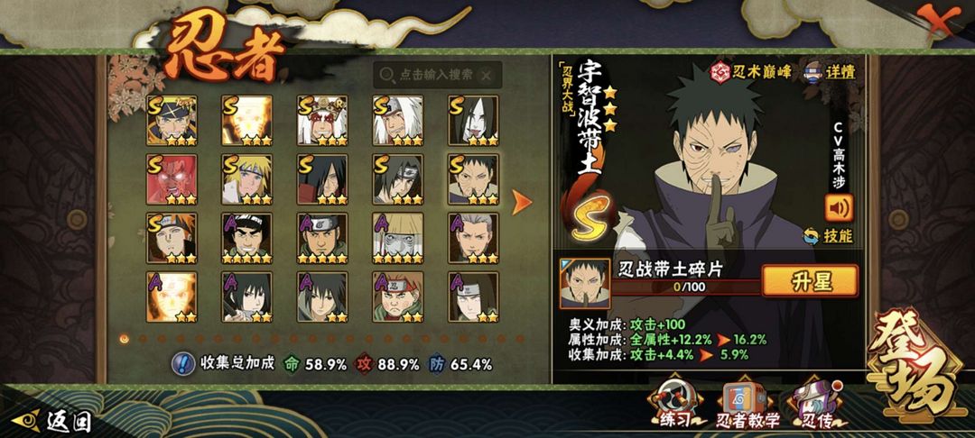 装备描述:.忍战带土,暴怒小孩,漂泊佩恩,元气卡卡西,死狗,三忍自来也,九喇叭鸣人