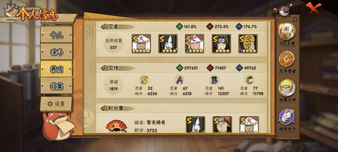 52s/67a/2450w战力/337忍/冷静小孩/鸡翅佐助/a忍三费组织全皮