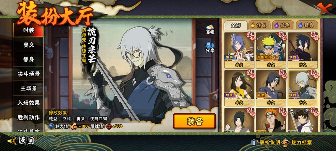 38s 63a 269个忍者 十尾带土 解斑 侠隐兜带时装 侠隐佐助带时装 满级霸体 熊猫