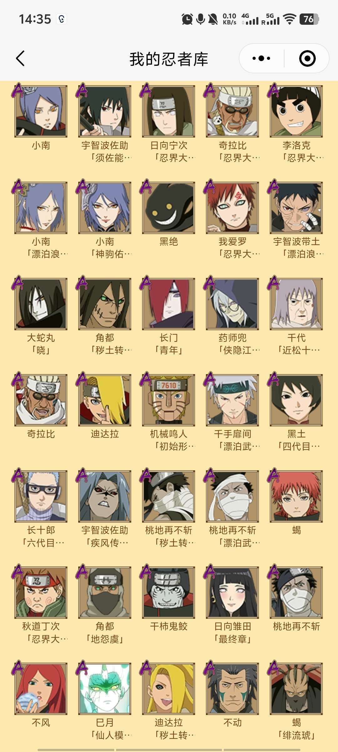 装备描述:除去马班半藏以外全忍法帖s 除去十尾带土以外全高招a忍s忍 全套漂泊侠隐系列忍者漂泊佐助有皮肤奥义图表情包 98通灵有熊猫二尾
