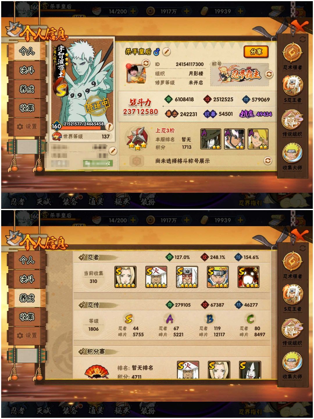 限制: 撤单率<40%才可租用此帐号装备描述:——————高品质店铺〖欢迎您〗—————— ⭕⭕⭕每晚11点后包夜特划算⭕⭕⭕ 撤单麻烦说明原因,方便我们查询原因并修改 ❤️租客须知❤ 租号后一上号就显示被顶号,是因为上个租客还在线才会被顶,再次登录即可! ❤️本店承诺❤ 账号图片描述真实✨不挤号 ❤温馨提示❤ 此账号为快速上号模式登录,不需要输入账号密码,租用后一键登录即可,如果出现登录异常等无法登录情况,只需要先打开火影忍者到登录界面,然后在用租号玩一键登录即可。 ❤安全提示❤ 恶意撤单✨恶意投诉差评✨乱捐碎片✨月底恶意段位掉分✨损毁材料等✨会查明并将永久拉黑处理,养号不易,请文明游戏,互相谅解,谢谢各位老板。 ミ❤ミ喜欢收藏不迷路,祝老板们玩得开心ミ❤ミ ——————左下角收藏〖不迷路〗——————
