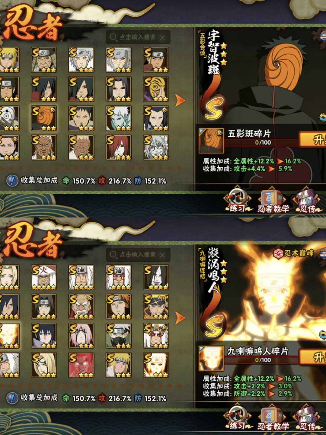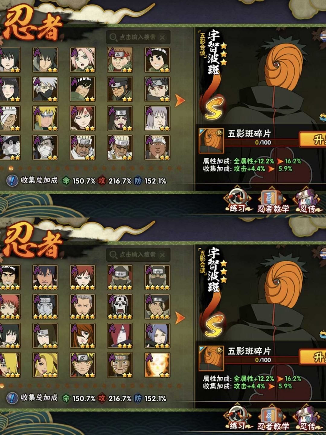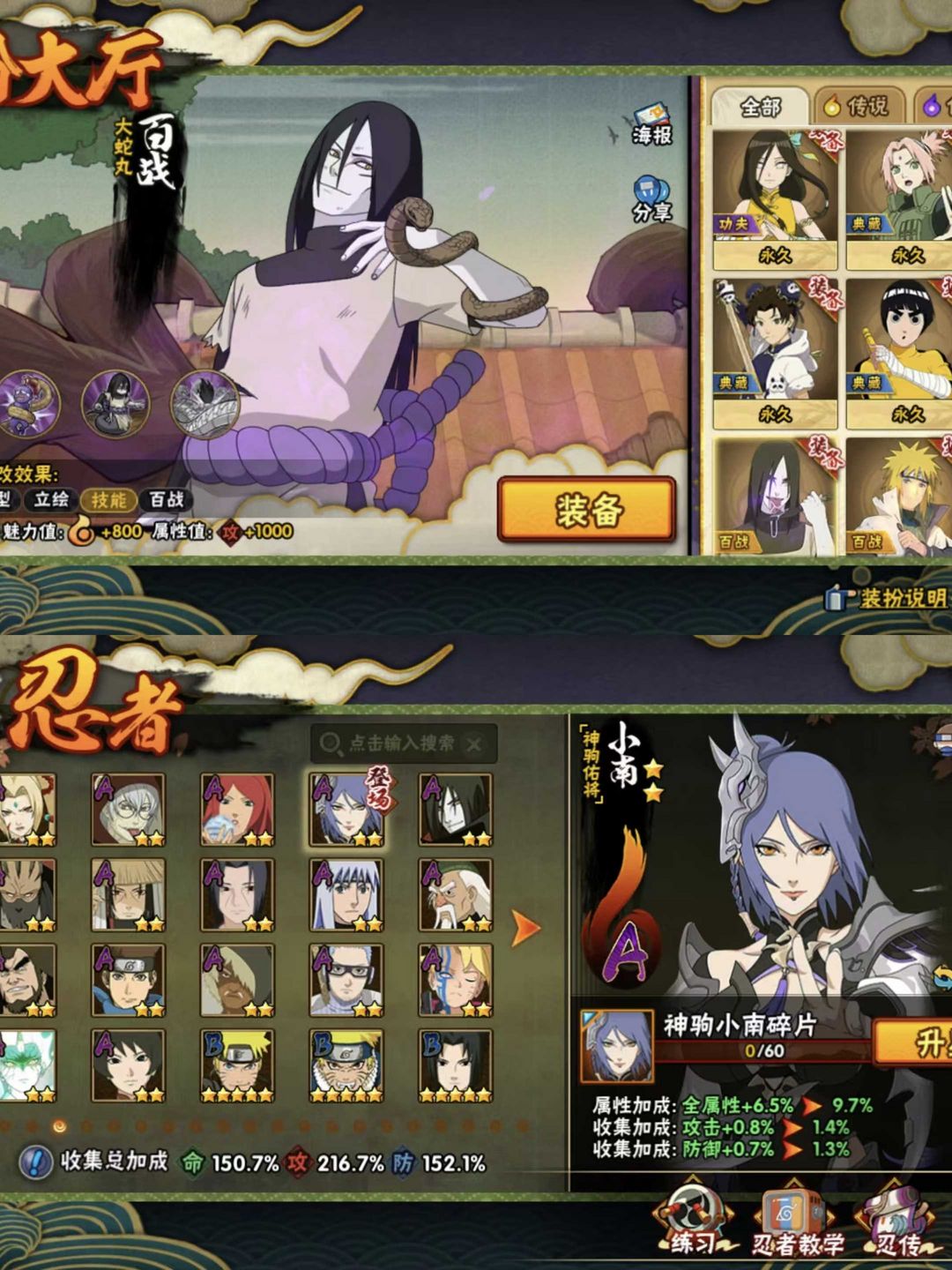 装备描述:247区安V 40s忍✨秽土解斑✨白面具✨三代猿飞日斩✨秽土鼬✨秽土斑✨自来也✨大蛇丸✨秽土长门✨仙人自来也仙自✨仙人兜✨四代雷影艾✨✨二代千手扉间✨✨✨天道佩恩✨百豪纲手✨千手柱间初代✨✨面具男✨水门✨✨须佐鼬✨纲手✨秽土二代✨✨斑✨豪杰自来也✨秽土三代✨大野木