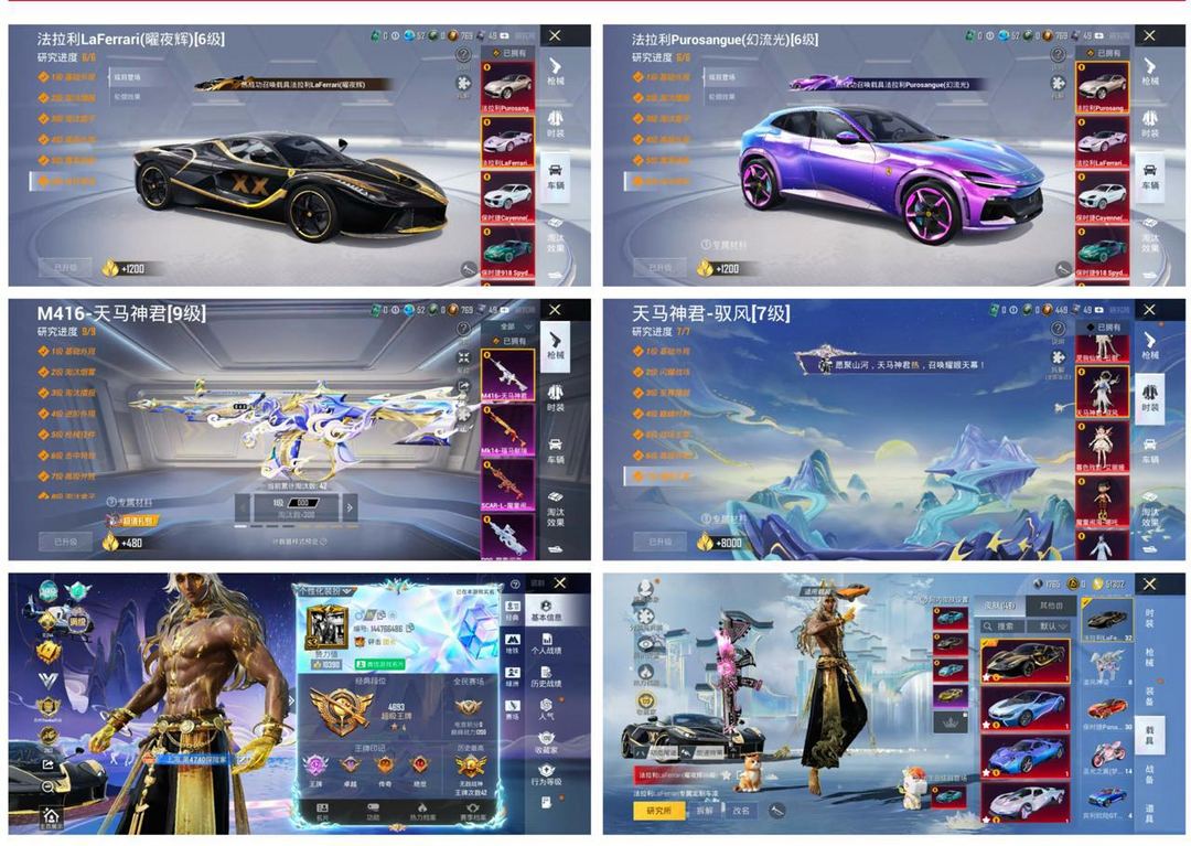 极品单字ID野¥双满级法拉利最新神君仙姬全套¥20满级车¥42王牌印记¥32把9级枪¥123万热