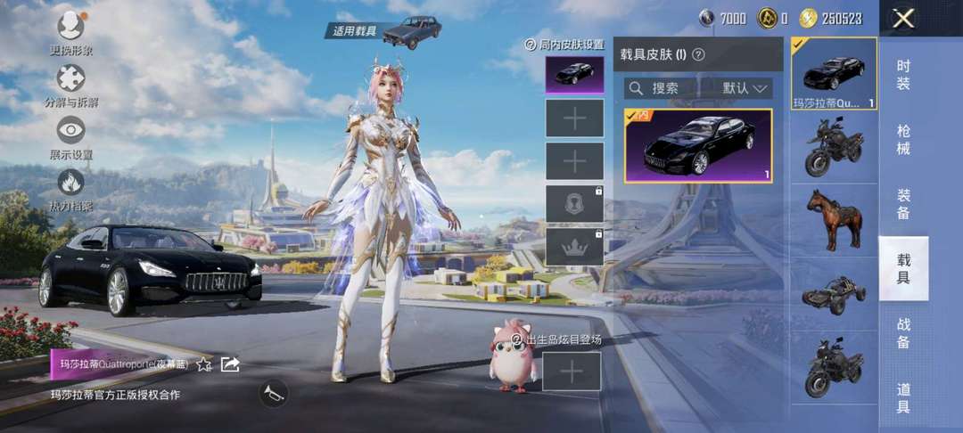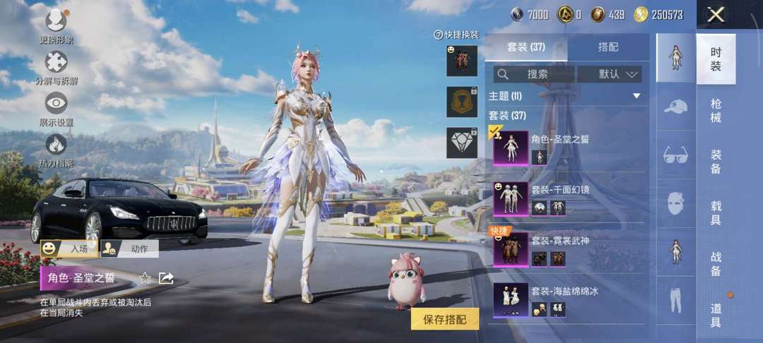 三套粉装一把特效枪一辆玛莎拉蒂圣堂之誓♥千面幻神♥霓裳武神♥玛莎拉蒂♥