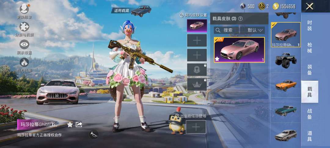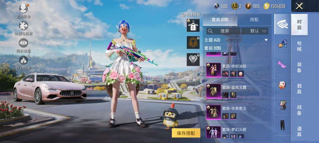 火箭少女全套,100多套装!满级金龙M4,满级巧克力AK,四把四级成长皮,粉色玛莎拉蒂+特斯拉
