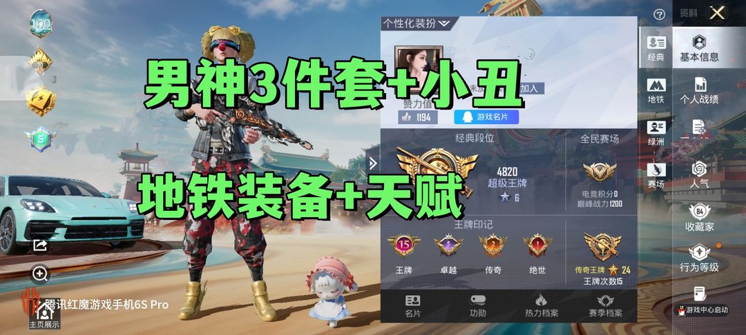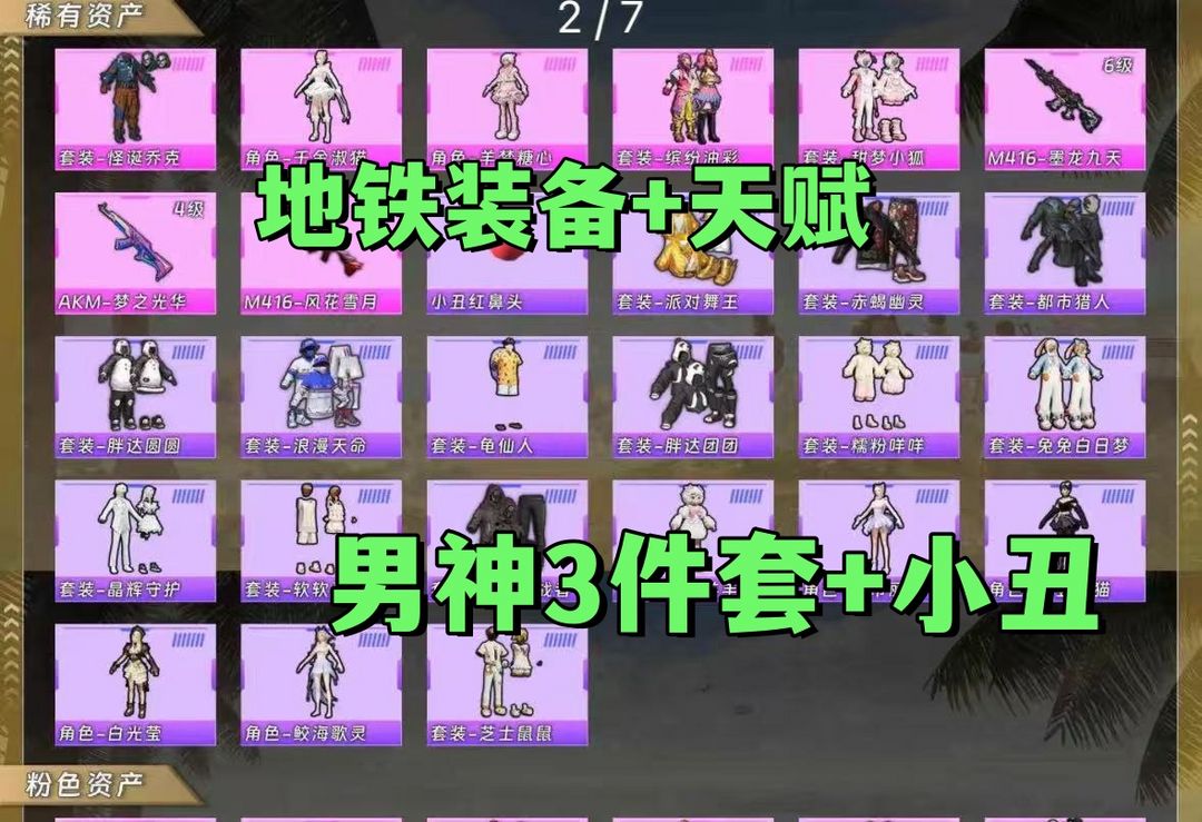 满素材号 地铁满天赋+装备 绝世印记 男神3件套+小丑 6级墨龙九天28粉装 18枪 都市 金鞋