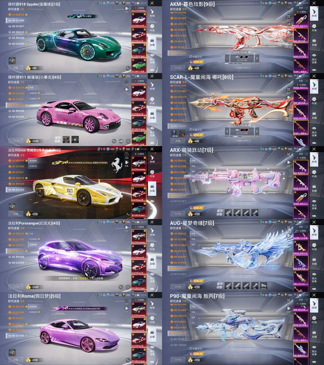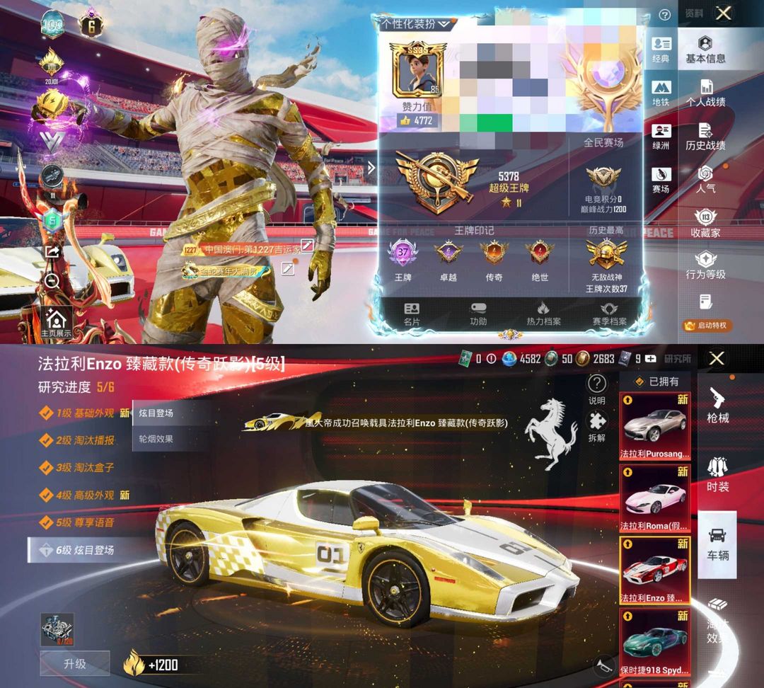 六级沙丘之主木乃伊✨满级法拉利Enzo恩佐臻藏款传奇跃影全系列收藏⚡九霄玄鹿星梦奇缘AUG六把九级枪