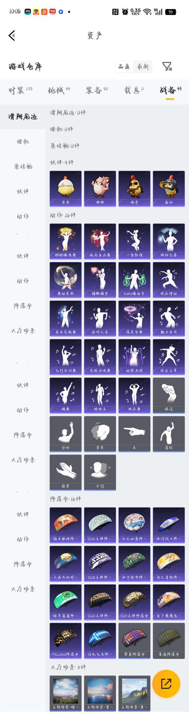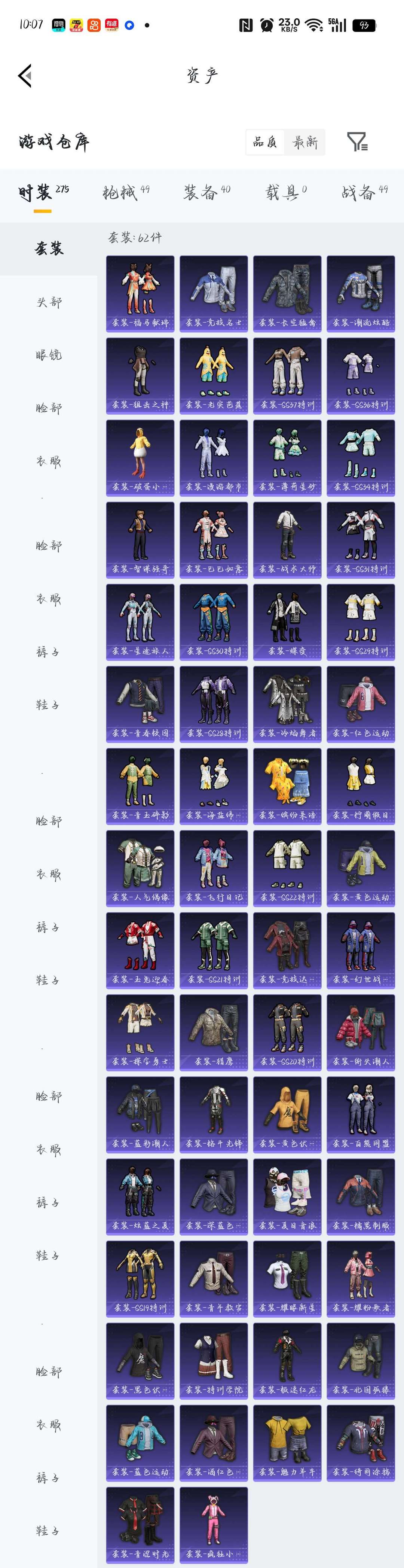 62套装/49枪皮(3粉)/40装备/26动作/16降落伞