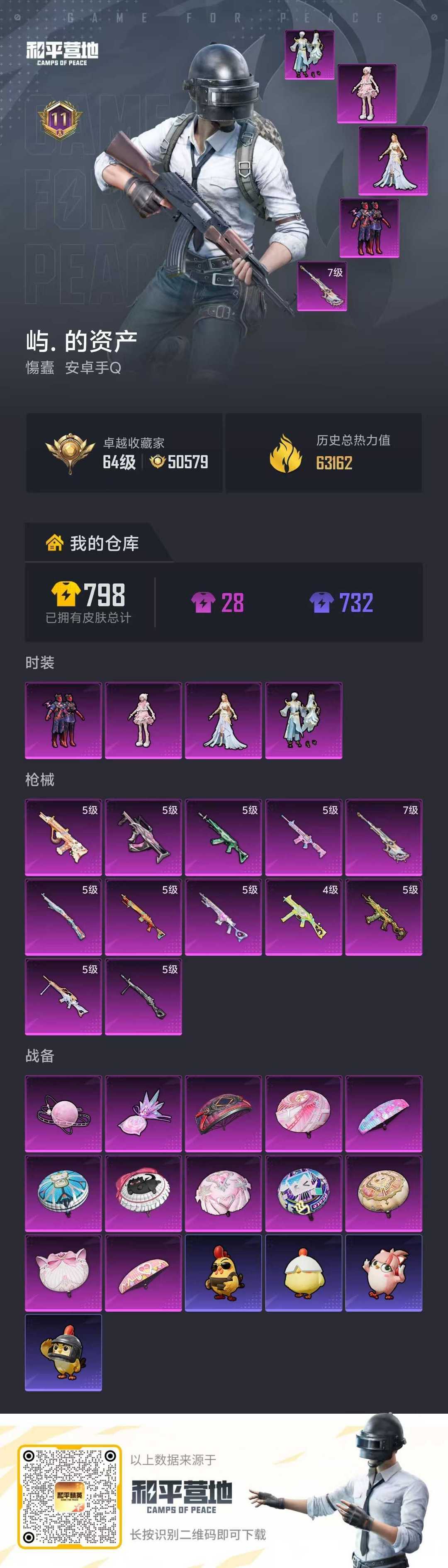 4件粉装,12把升级枪,11王牌印记,皮肤够用