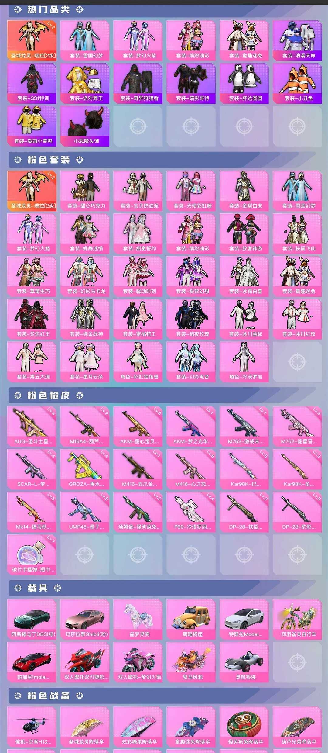1神装➕28粉装➕19粉枪➕11载具❤️极品素材➕男神身法号❤️