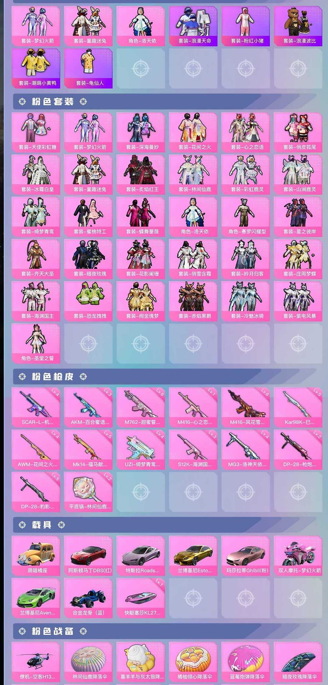 31粉装➕14粉枪➕9载具❤️极品素材➕男神身法号❤️