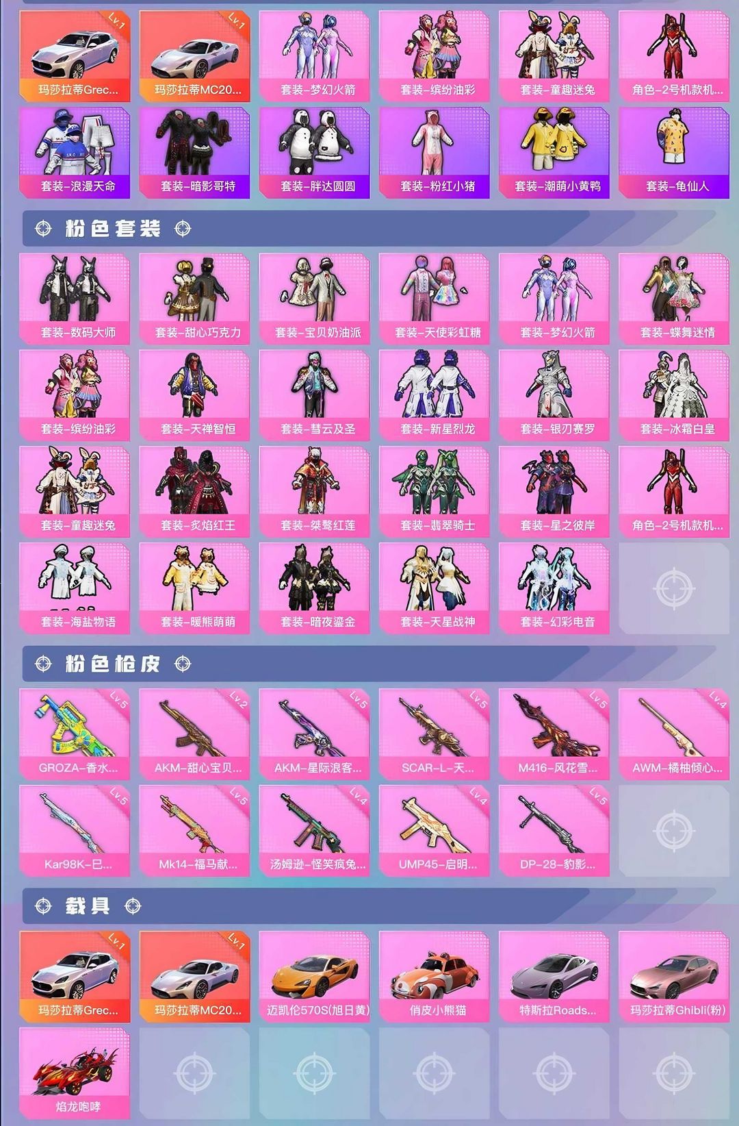23粉装➕11粉枪➕7载具❤️极品素材➕男神身法号❤️