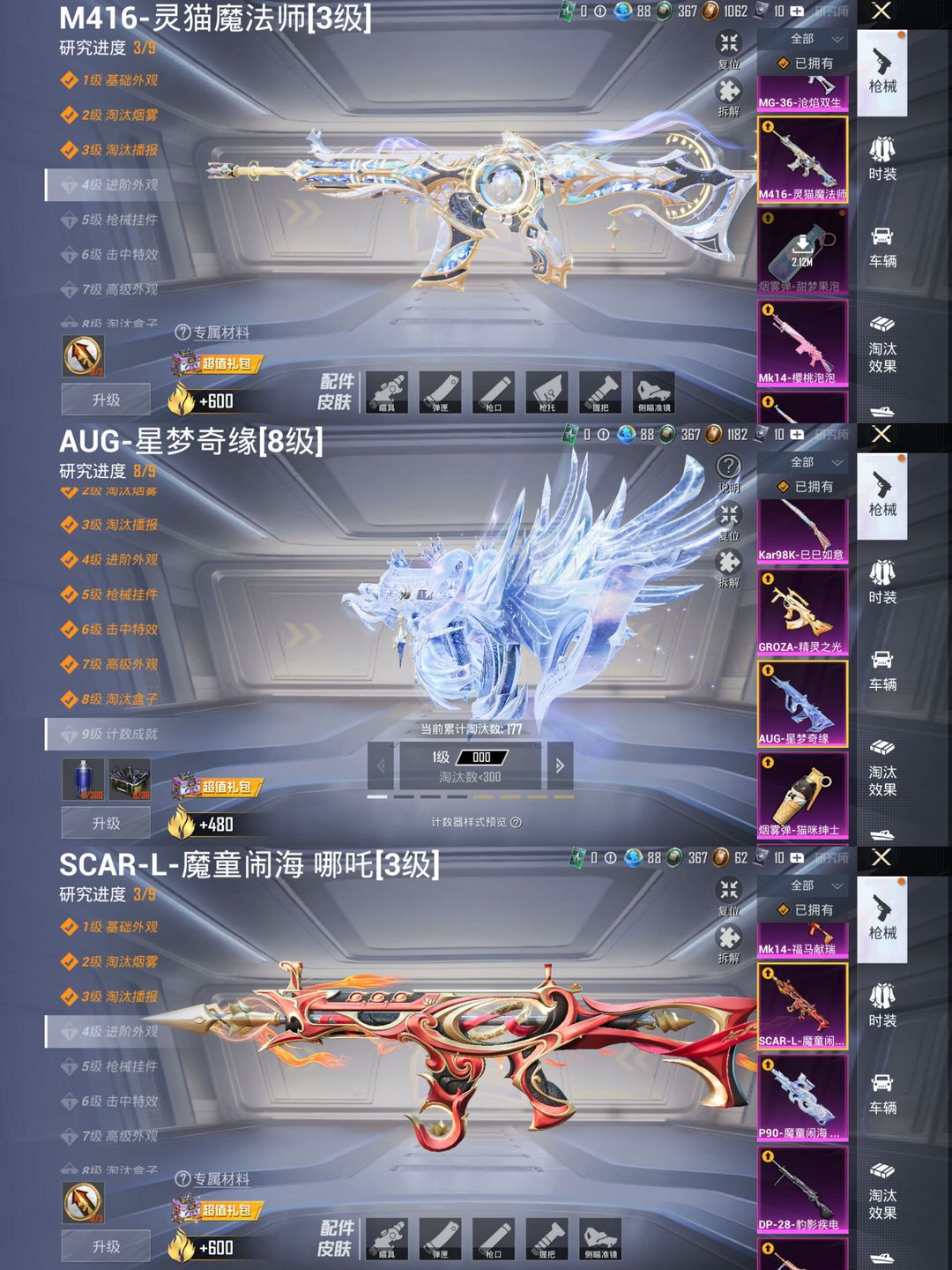 包天特惠✨满素材龙师父小丑雪国✨八级星梦aug木乃伊星星裤✨战神框✨满级手雷套星空马✨三巧